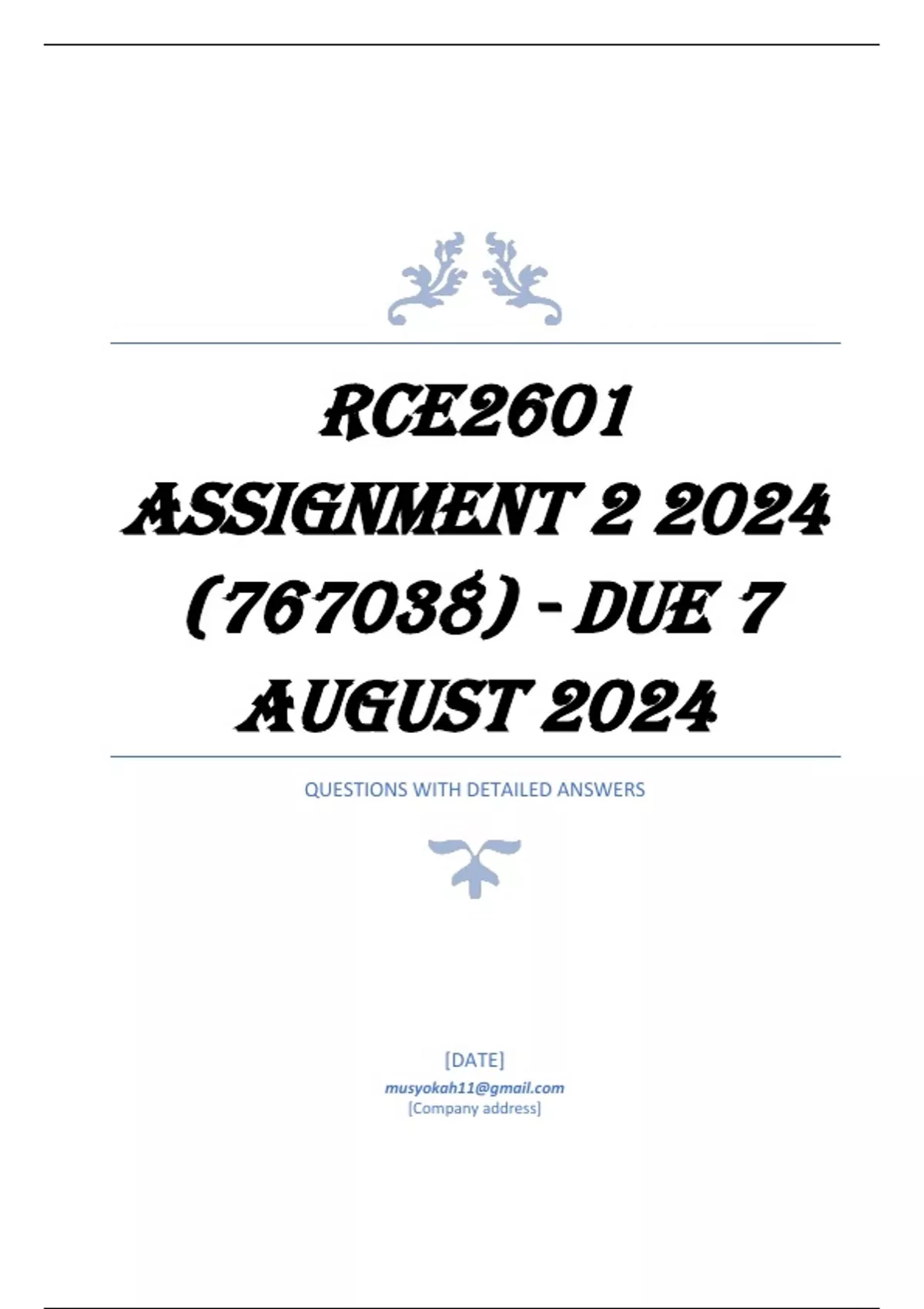 , RCE2601 Assignment 2 2024 (767038) - DUE 7 August