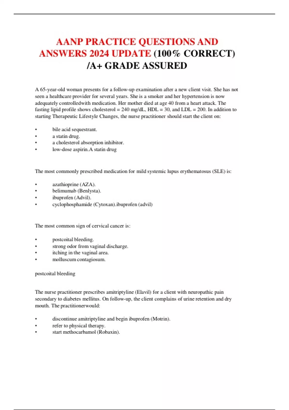 AANP PRACTICE QUESTIONS AND ANSWERS 2024 UPDATE (100% CORRECT) A+ GRADE ASSURED