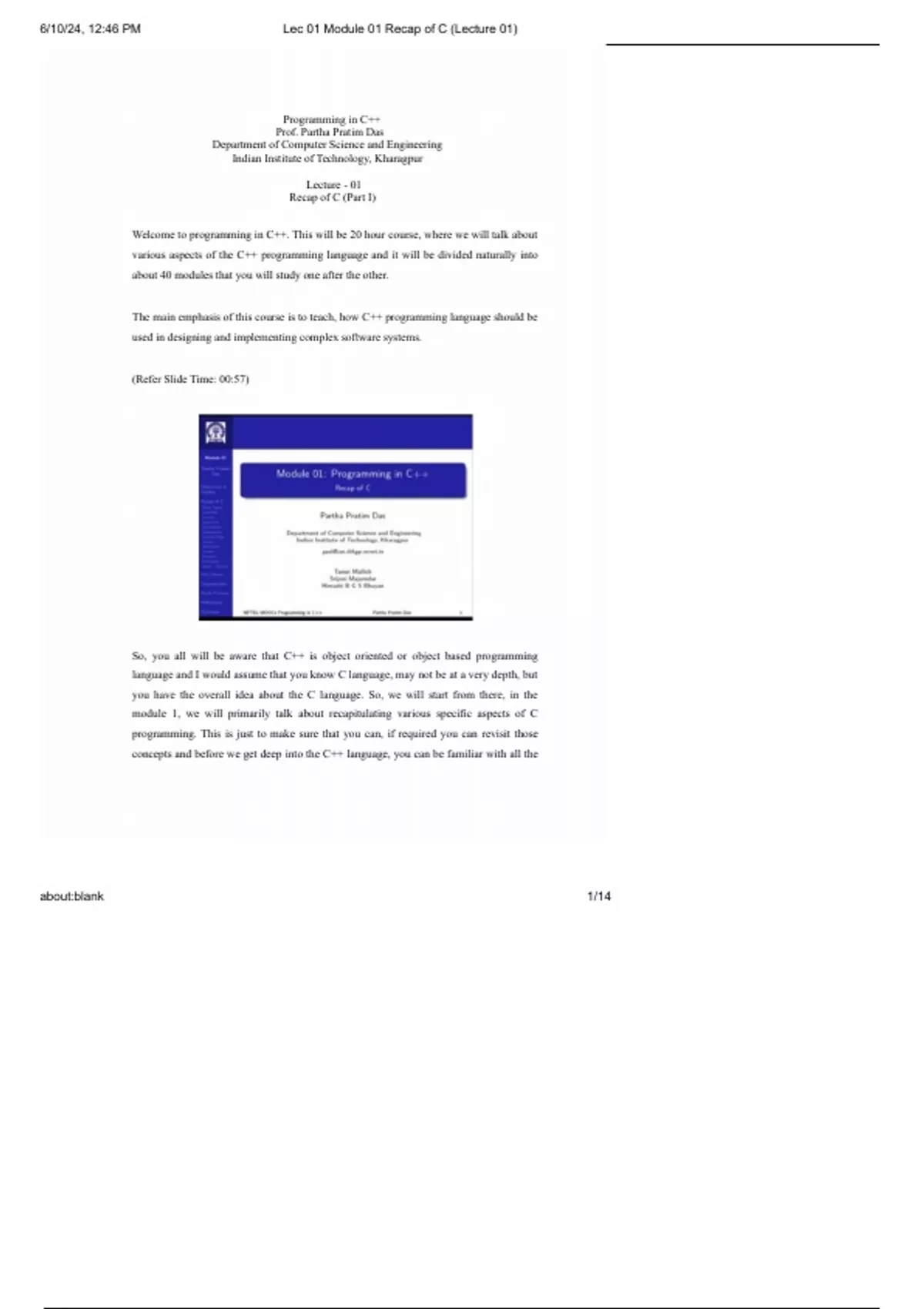 , 6/10/24, 12:46 PM Lec 01 Module 01 Recap of C (Lecture 01)