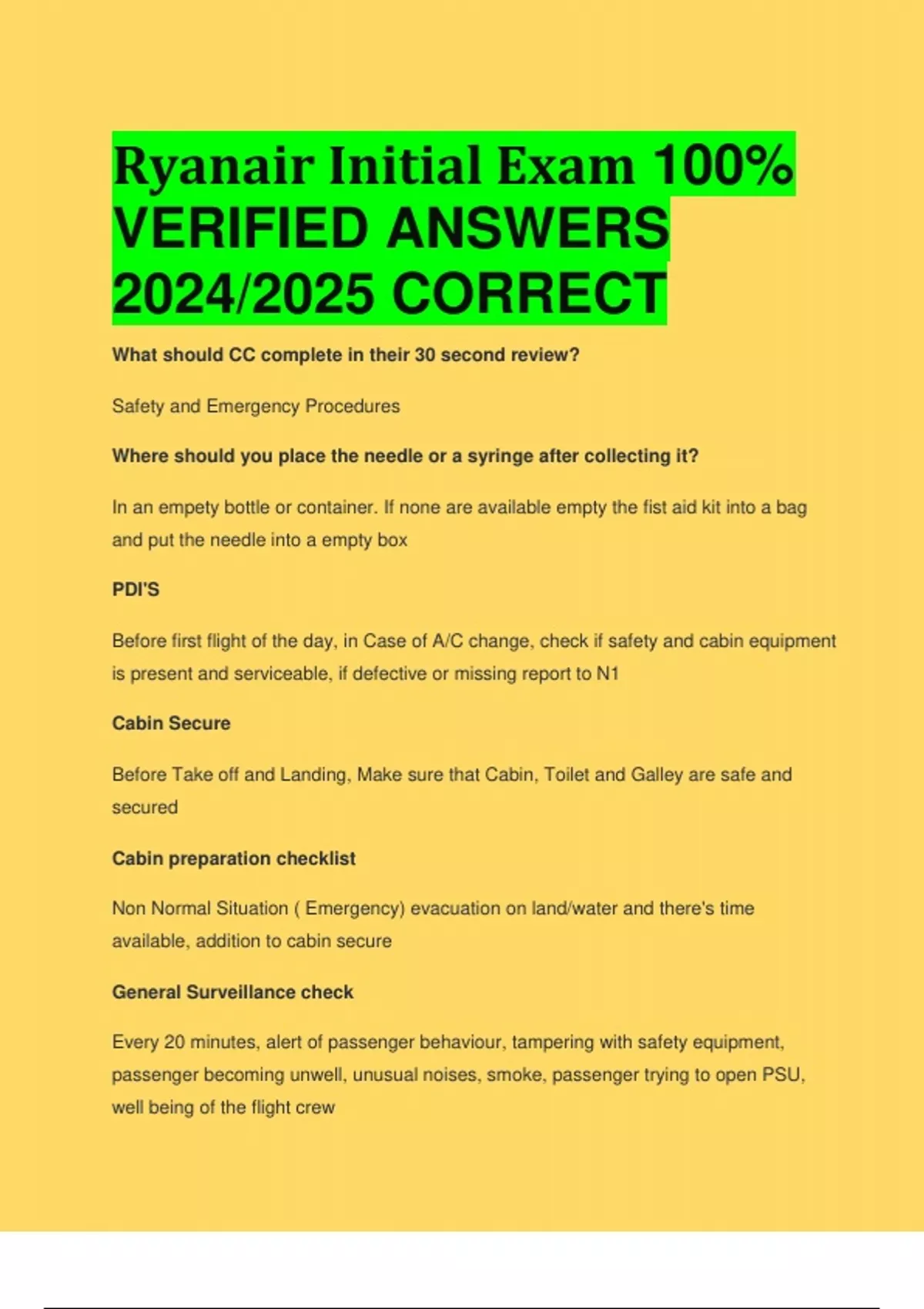 Ryanair Initial Exam 100% VERIFIED ANSWERS 2024/2025 CORRECT