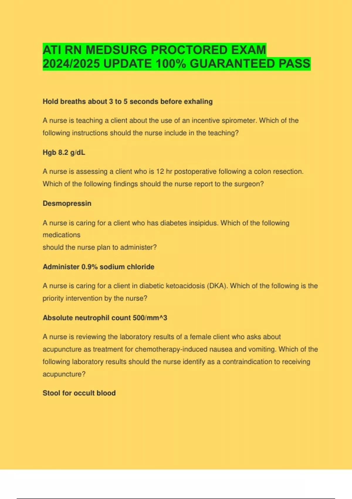 ATI RN MEDSURG PROCTORED EXAM 2024/2025 UPDATE 100% GUARANTEED PASS