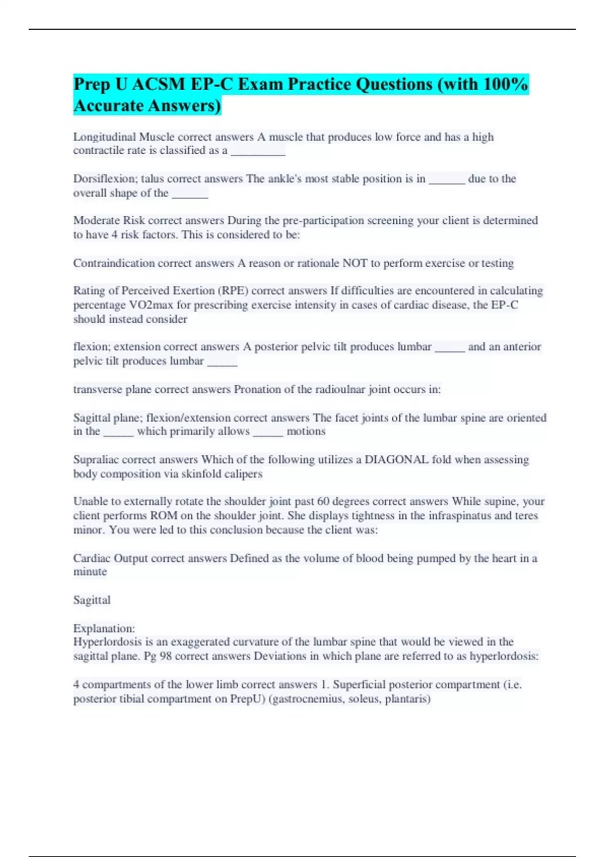 Prep U ACSM EP-C Exam Practice Questions (with 100% Accurate Answers