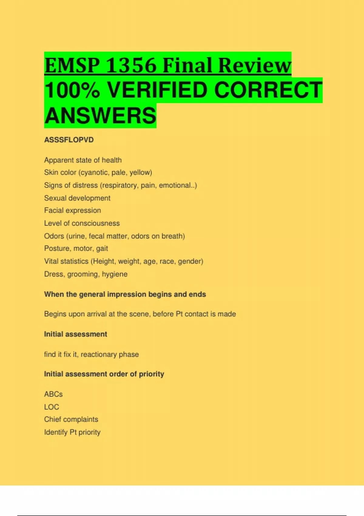 BEST ANSWERS EMSP 1356 Final Review 100% VERIFIED CORRECT ANSWERS