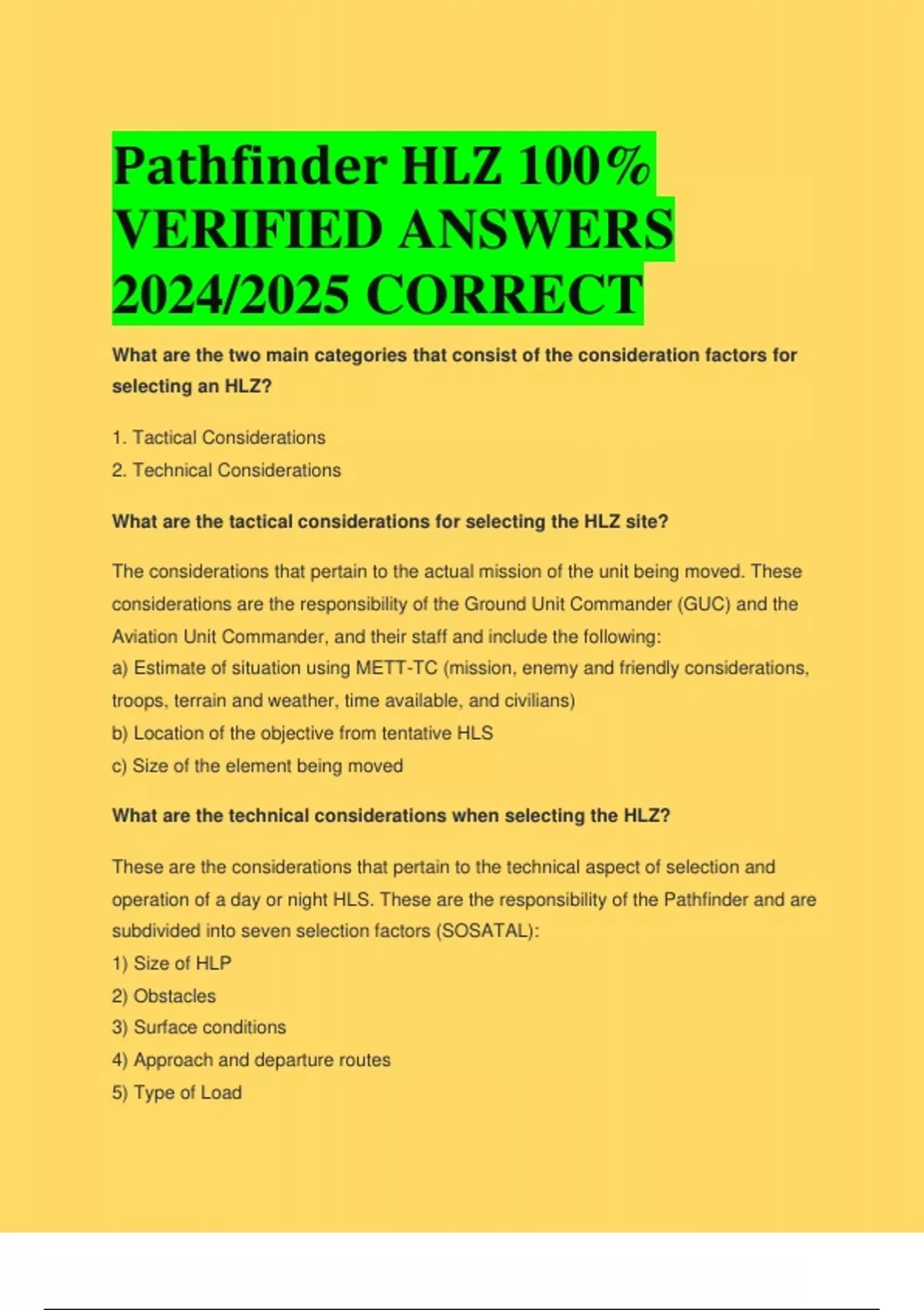 BEST ANSWERS Pathfinder HLZ 100% VERIFIED ANSWERS 2024/2025 CORRECT