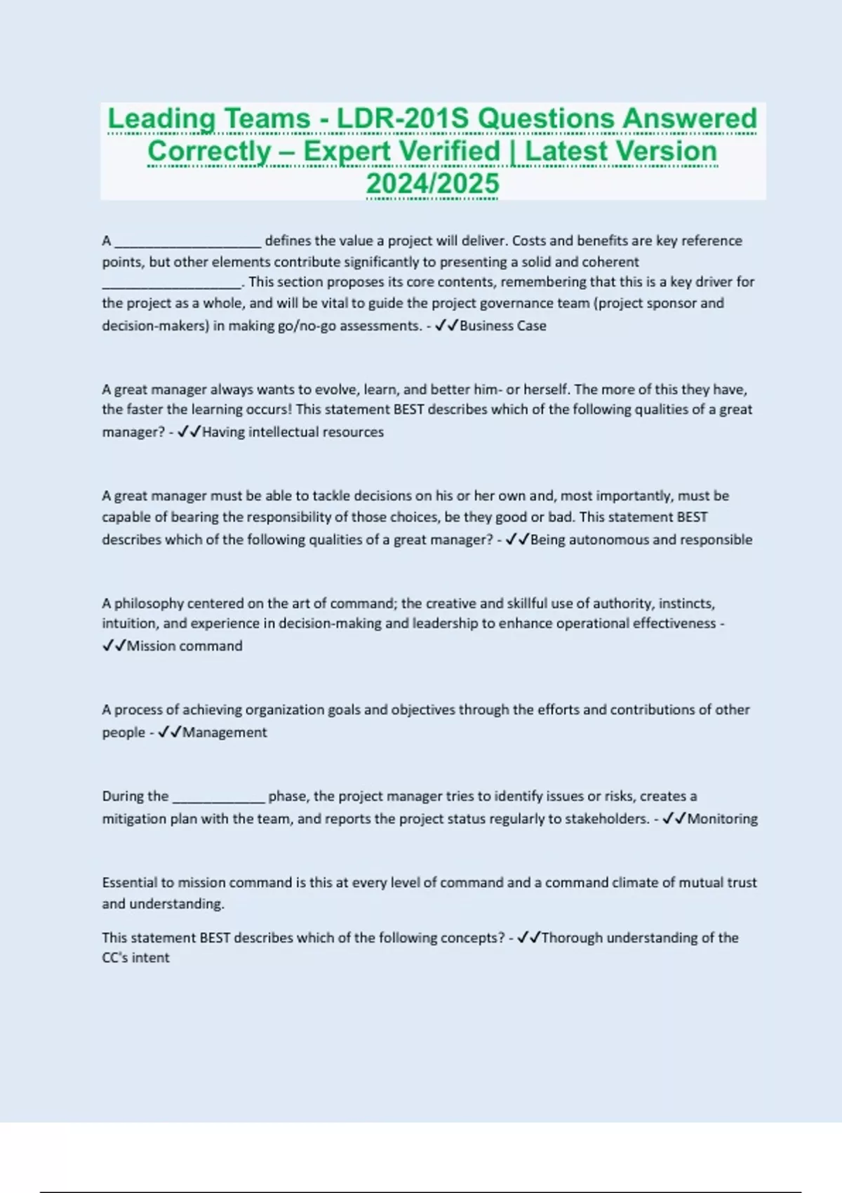 Leading Teams - LDR-201S Questions Answered Correctly – Expert Verified | Latest Version 2024/2025