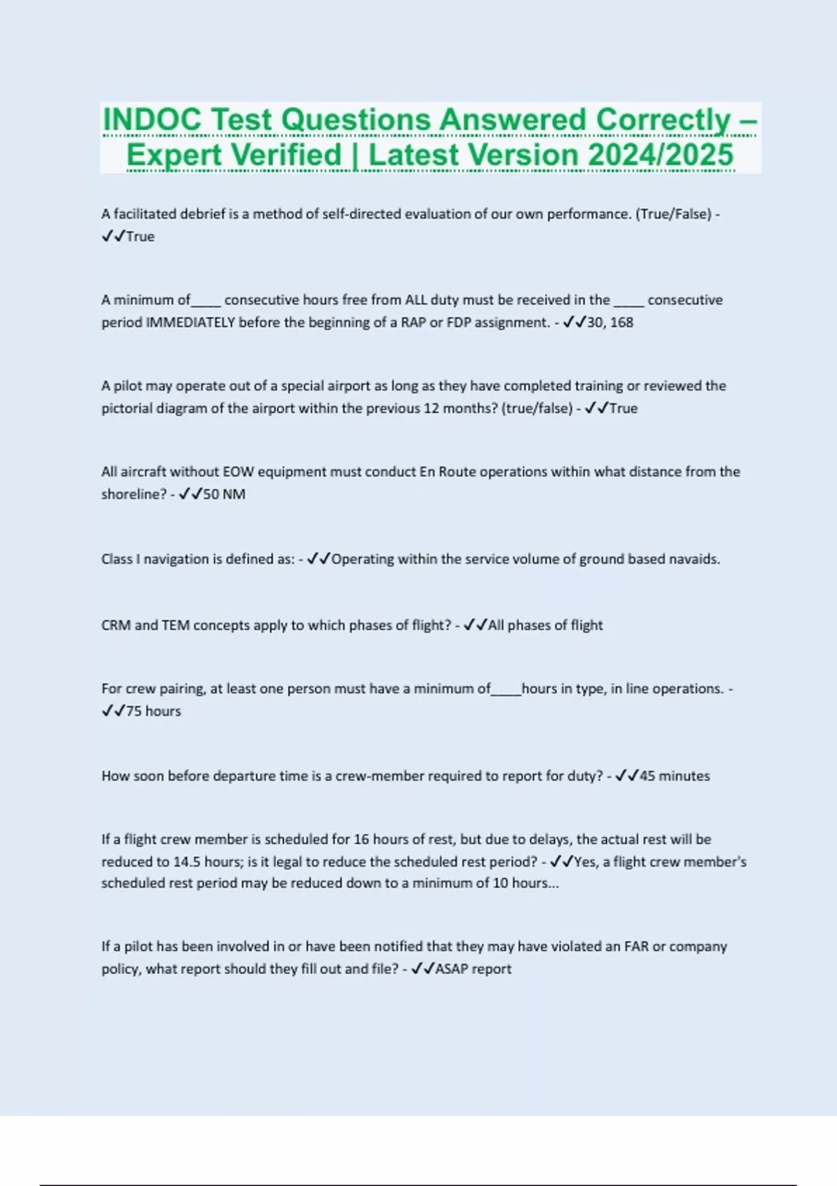 INDOC Test Questions Answered Correctly – Expert Verified | Latest Version 2024/2025