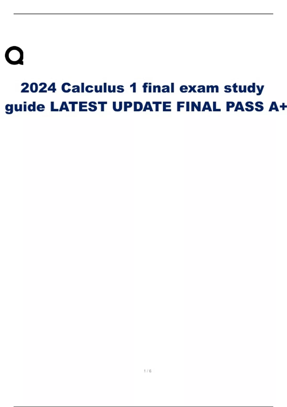 2024 Calculus 1 final exam study guide LATEST UPDATE FINAL PASS A+ 2 / 6