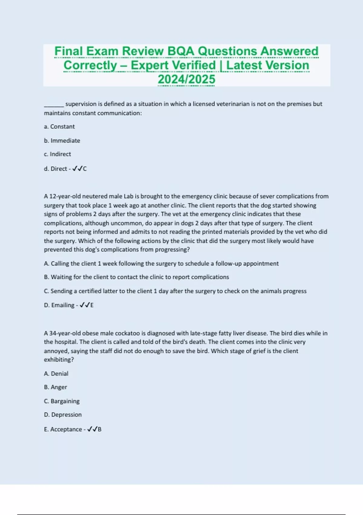 Final Exam Review BQA Questions Answered Correctly – Expert Verified | Latest Version 2024/2025