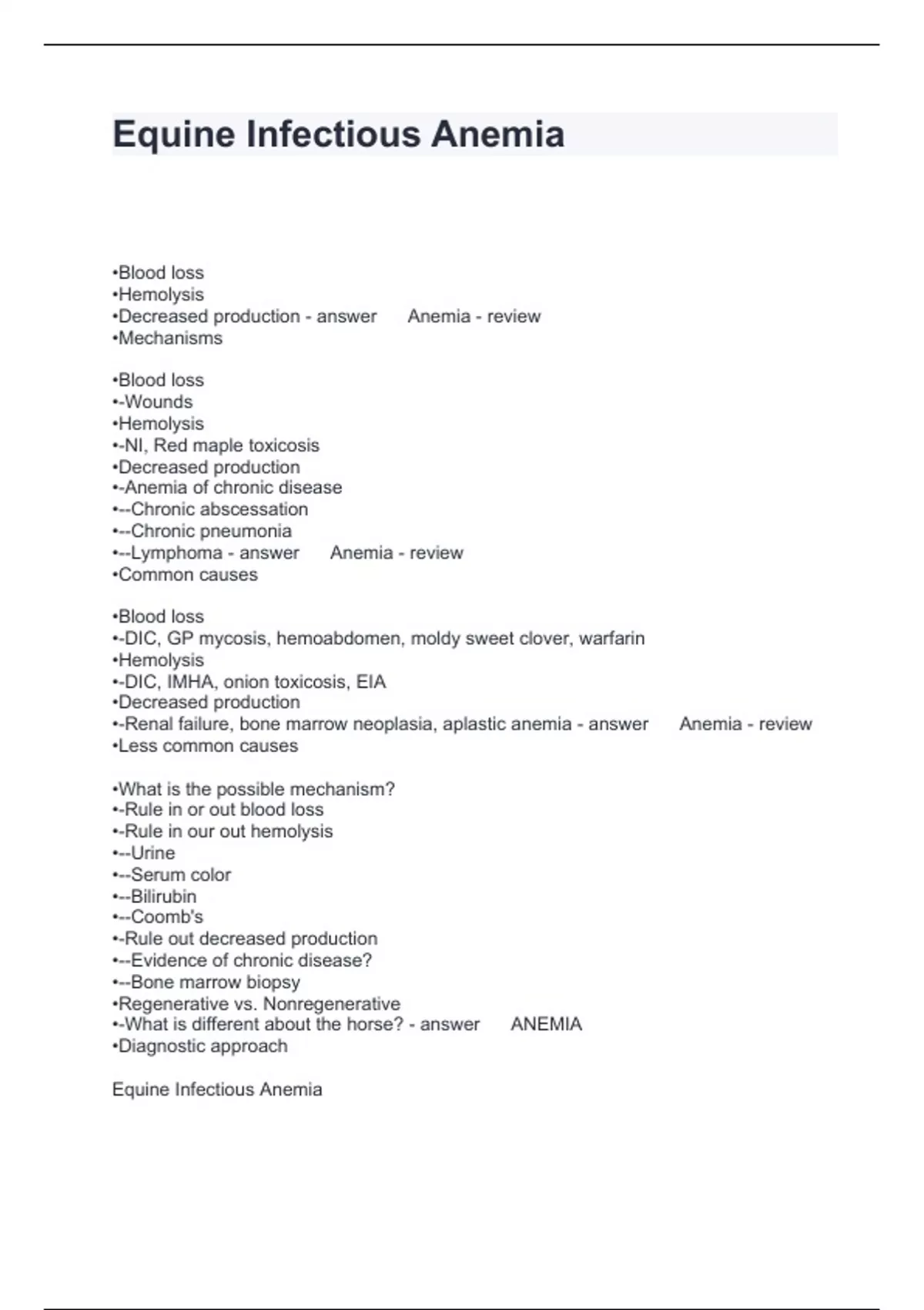 Equine Infectious Anemia Questions and Answers 2024