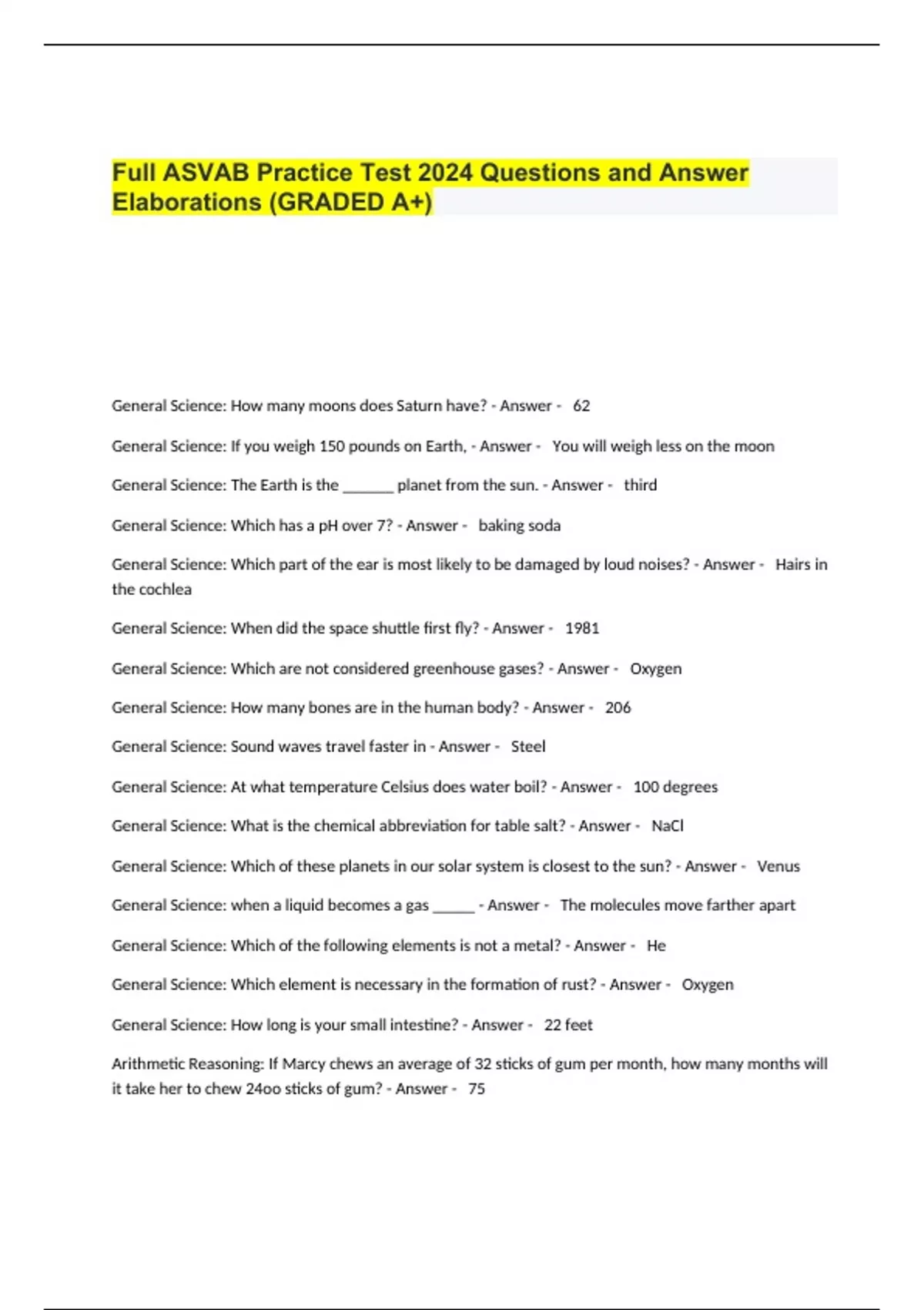 Full ASVAB Practice Test 2024 Questions and Answer Elaborations (GRADED A+)
