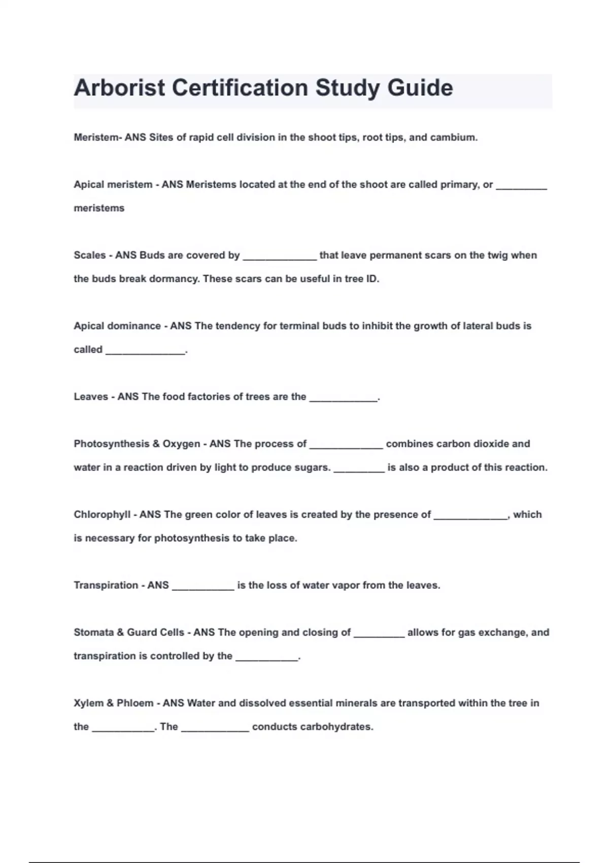 arborist certification study guide questions ans