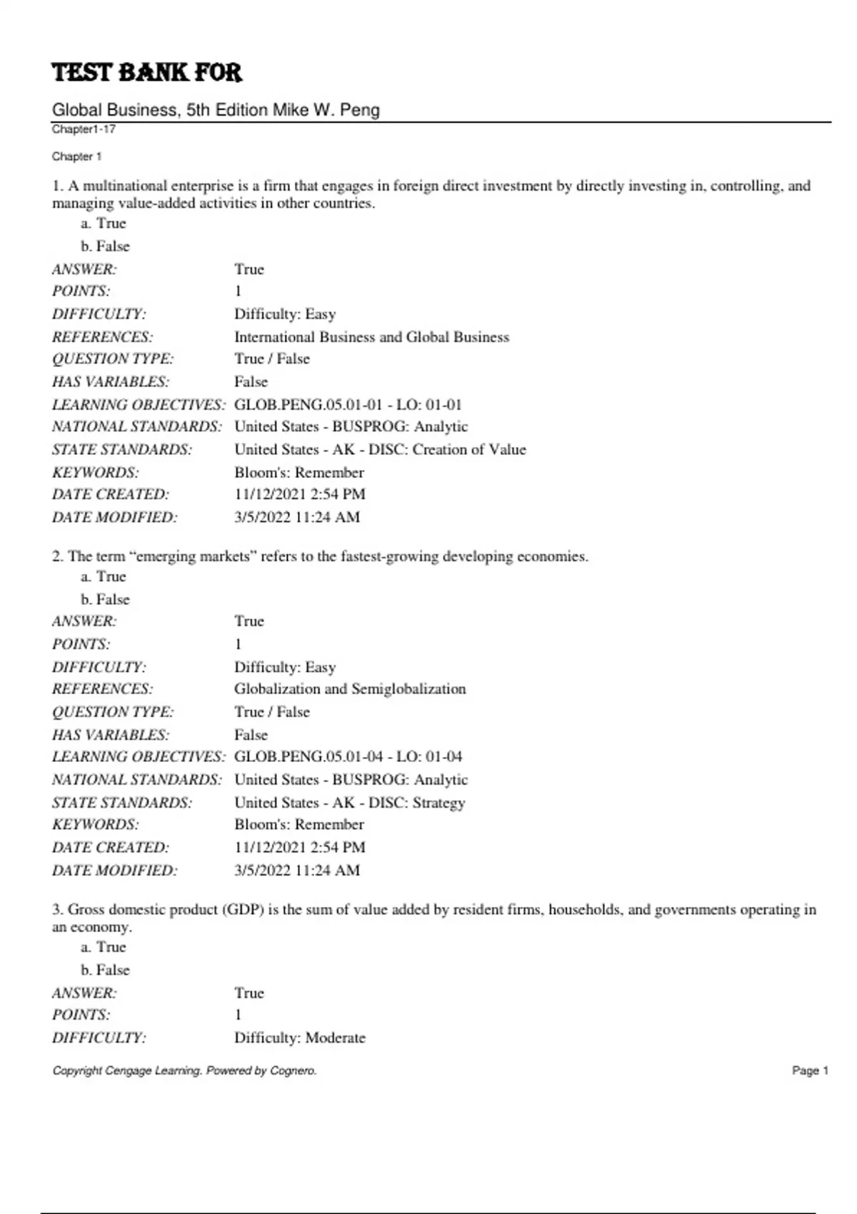 Global Business, 5th Edition Mike W. Peng