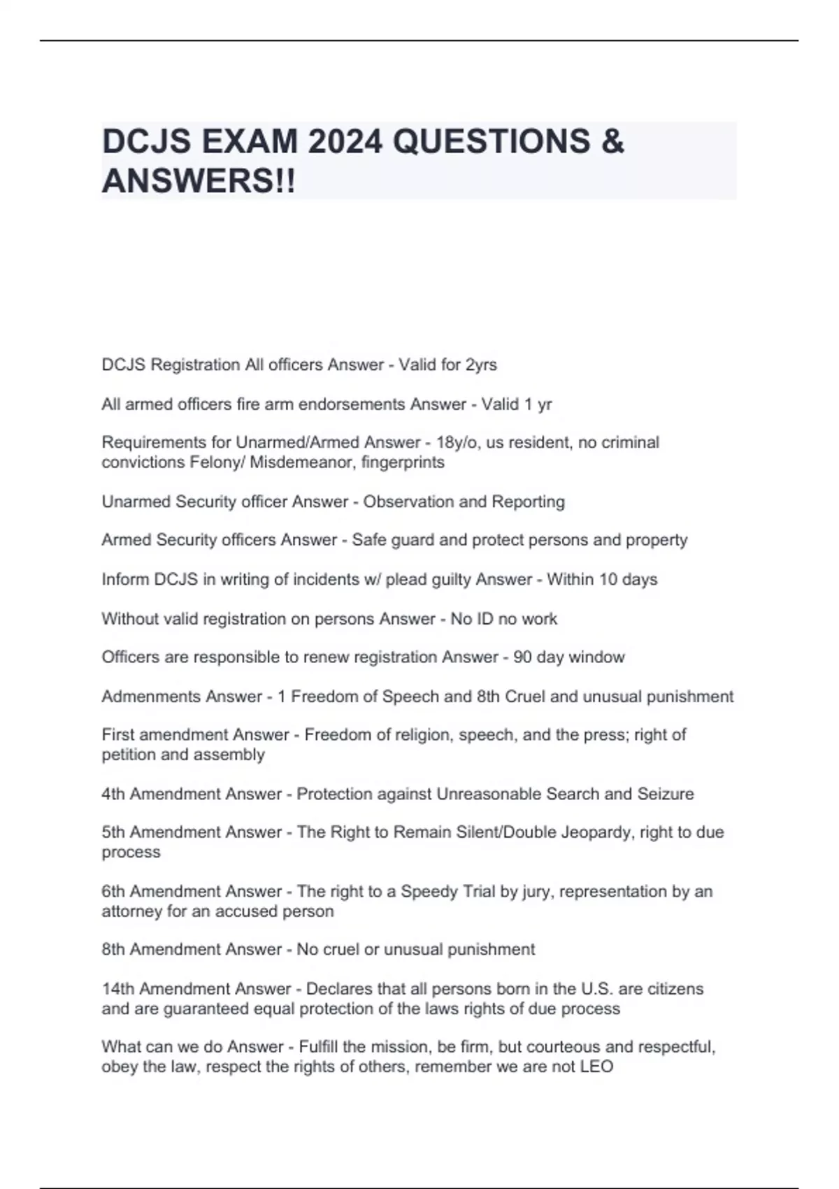 DCJS EXAM STUDY NOTES 2024 QUESTIONS & ANSWERS!!