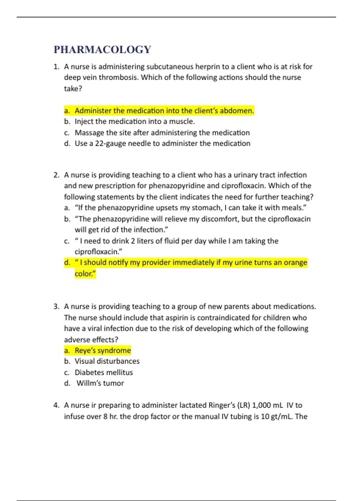 1. A nurse is administering subcutaneous herprin to a client who is at risk for