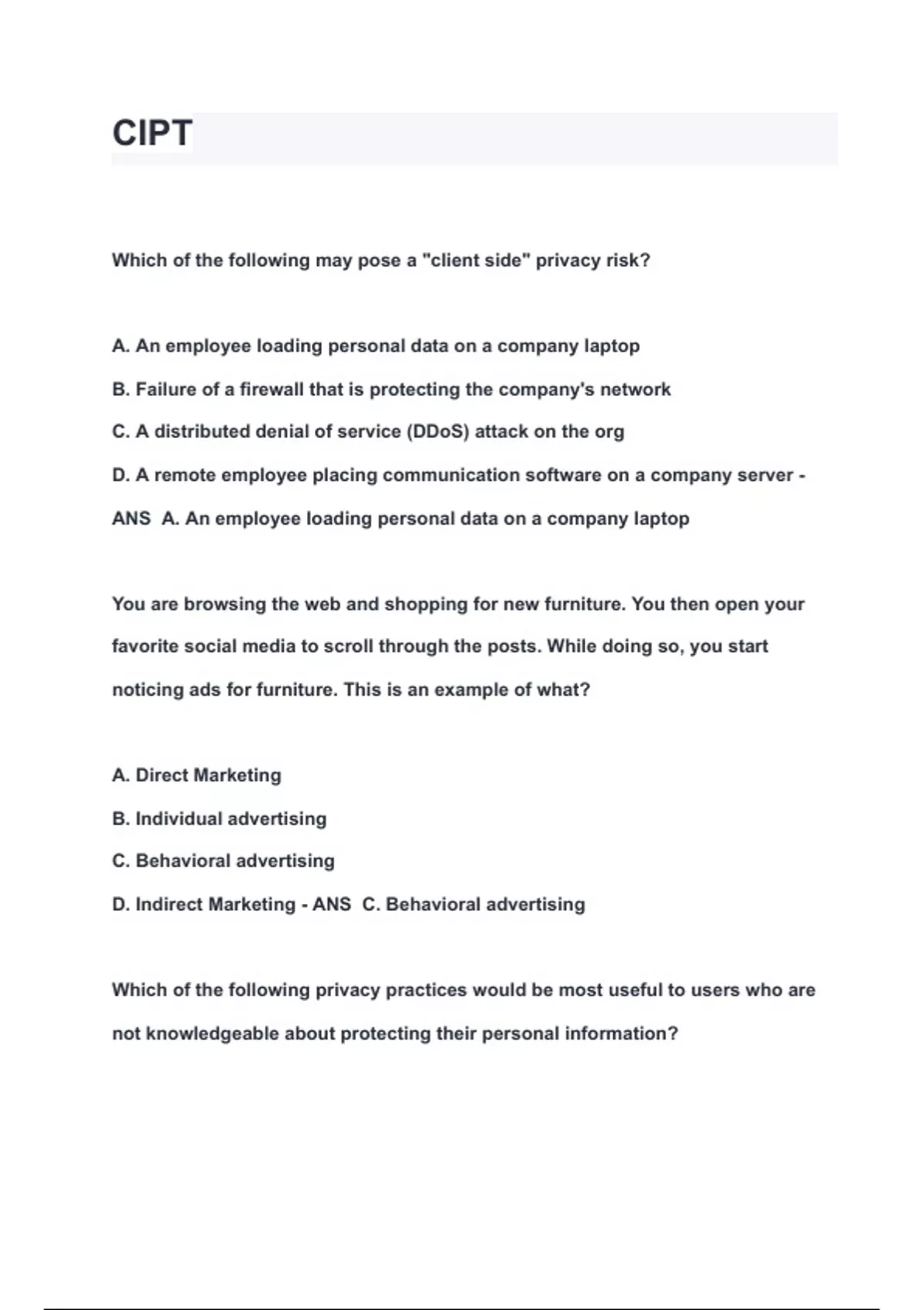 CIPT QUESTIONS & ANSWERS 2024 ( A+ GRADED 100% VERIFIED)