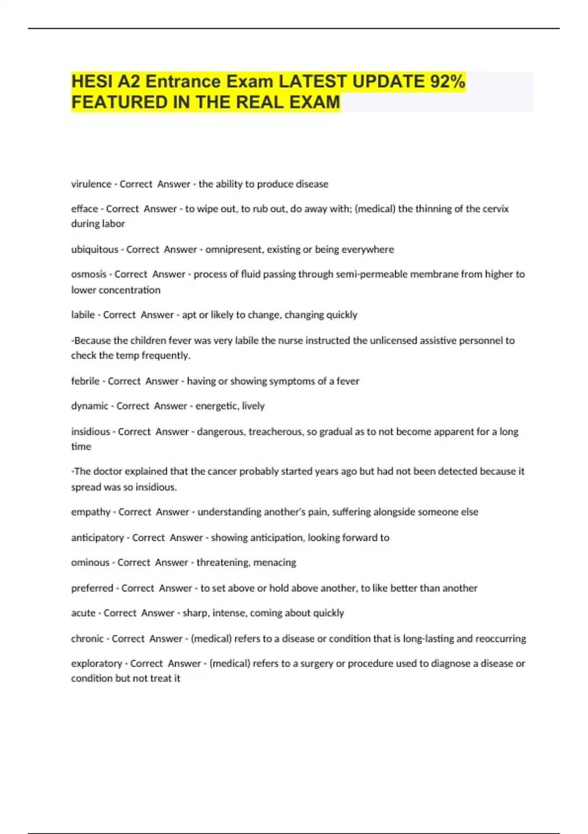 HESI A2 Entrance Exam LATEST UPDATE 92% FEATURED IN THE REAL EXAM