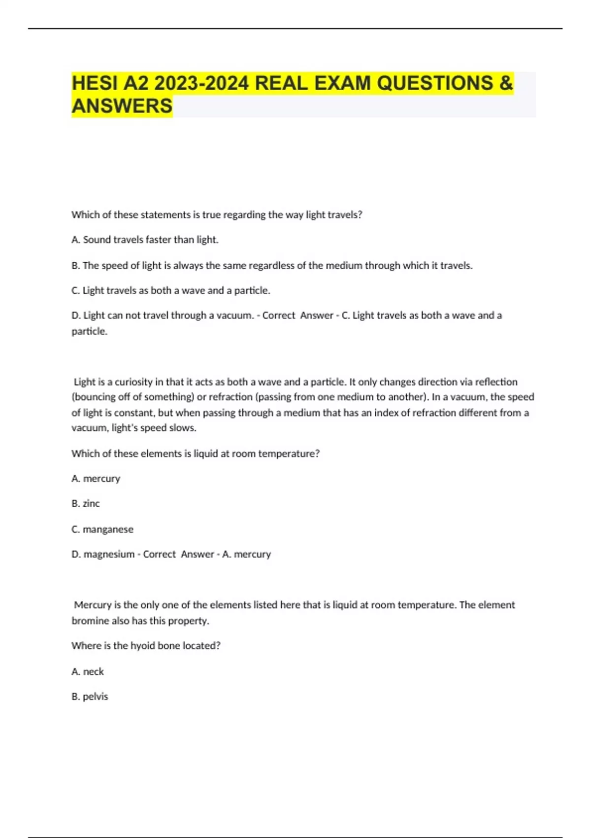 HESI A REAL EXAM QUESTIONS & ANSWERS.