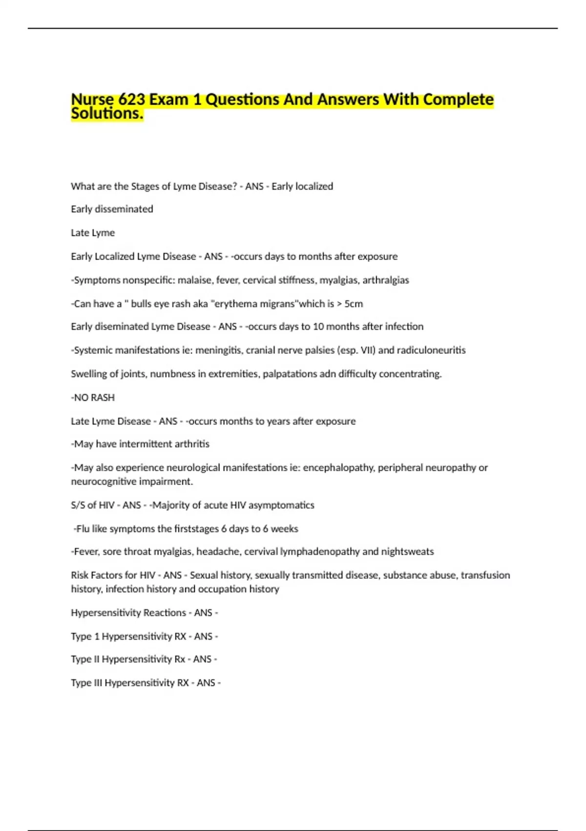 Nurse 623 Exam 1 Questions And Answers With Complete Solutions.
