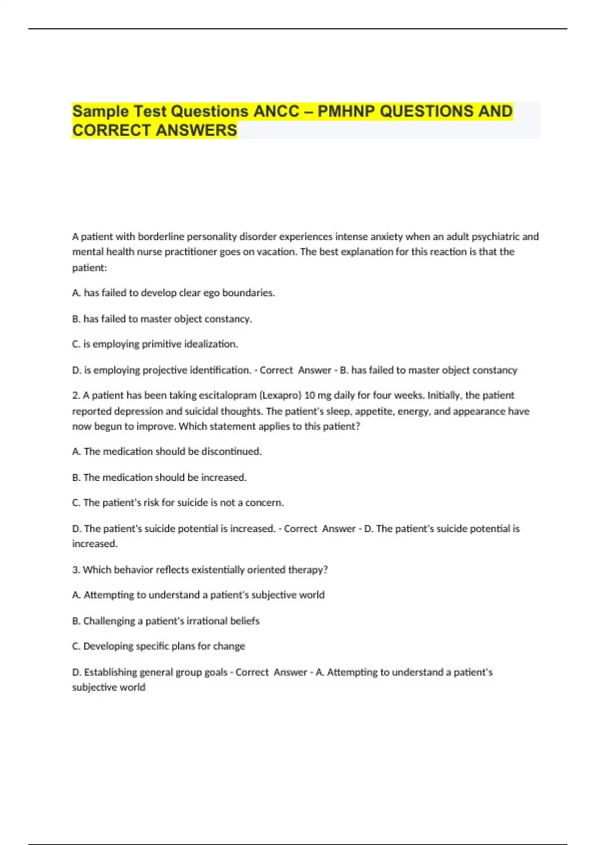 Sample Test Questions ANCC – PMHNP QUESTIONS AND CORRECT ANSWERS