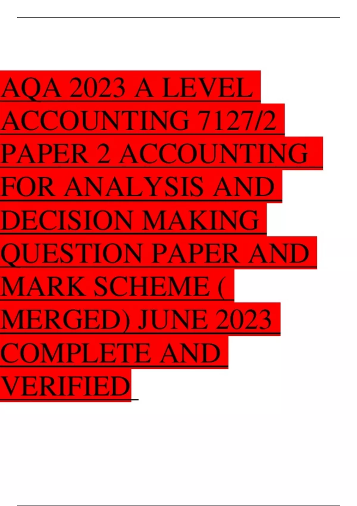 AQA 2023 A-level ACCOUNTING 7127/2 Paper 2 Accounting for analysis and decision-making Question Paper& Mark scheme(Merged)June 2023 [VERIFIED]