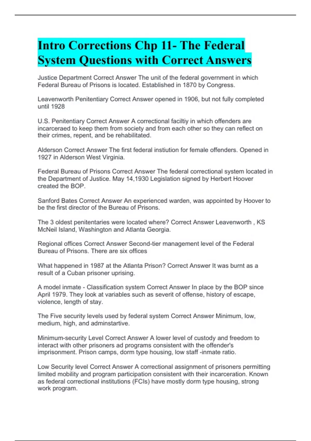 Intro Corrections Chp 11- The Federal System Questions with Correct Answers