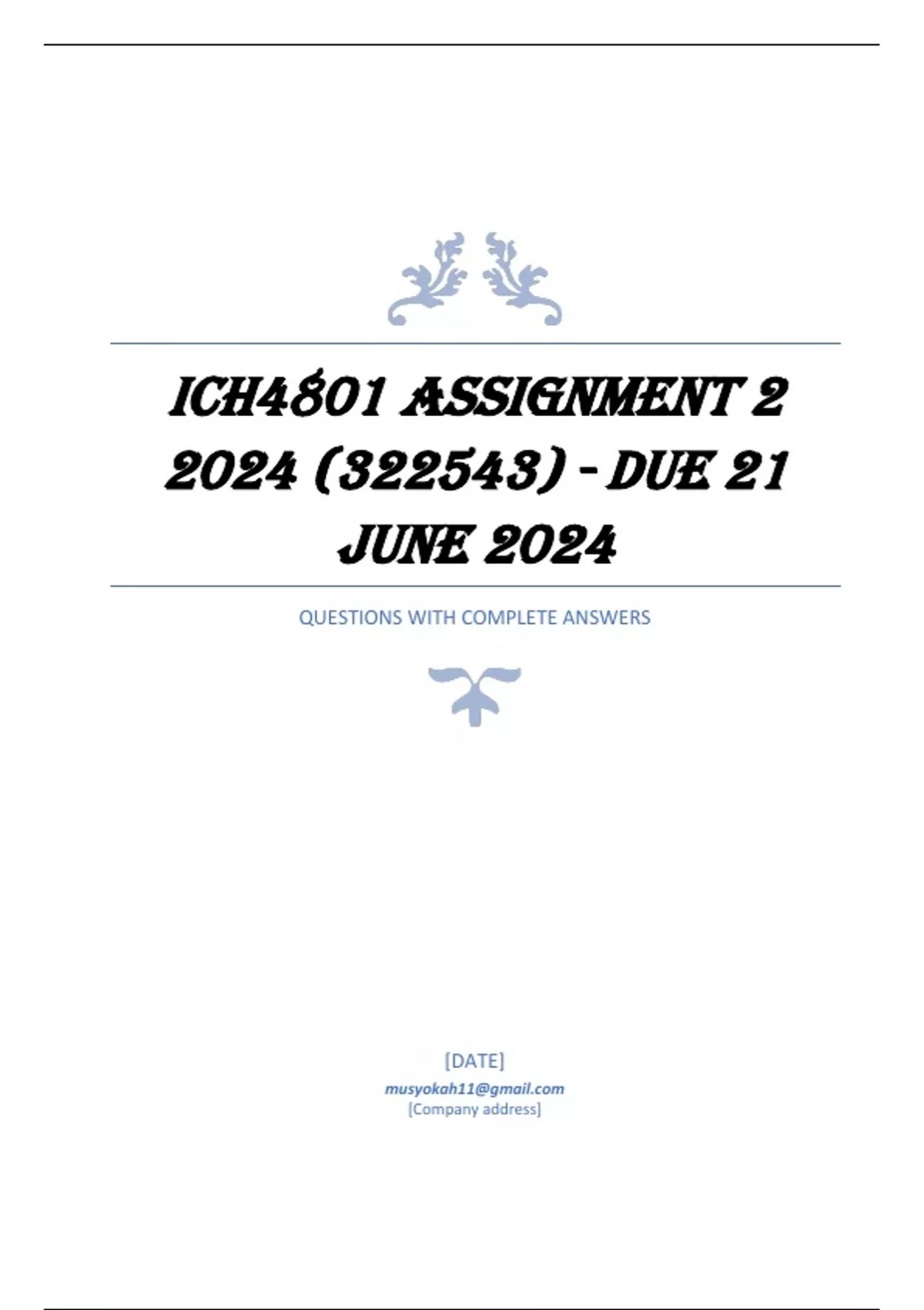 ,ICH4801 Assignment 2 2024 (322543) - DUE 21 June 2024