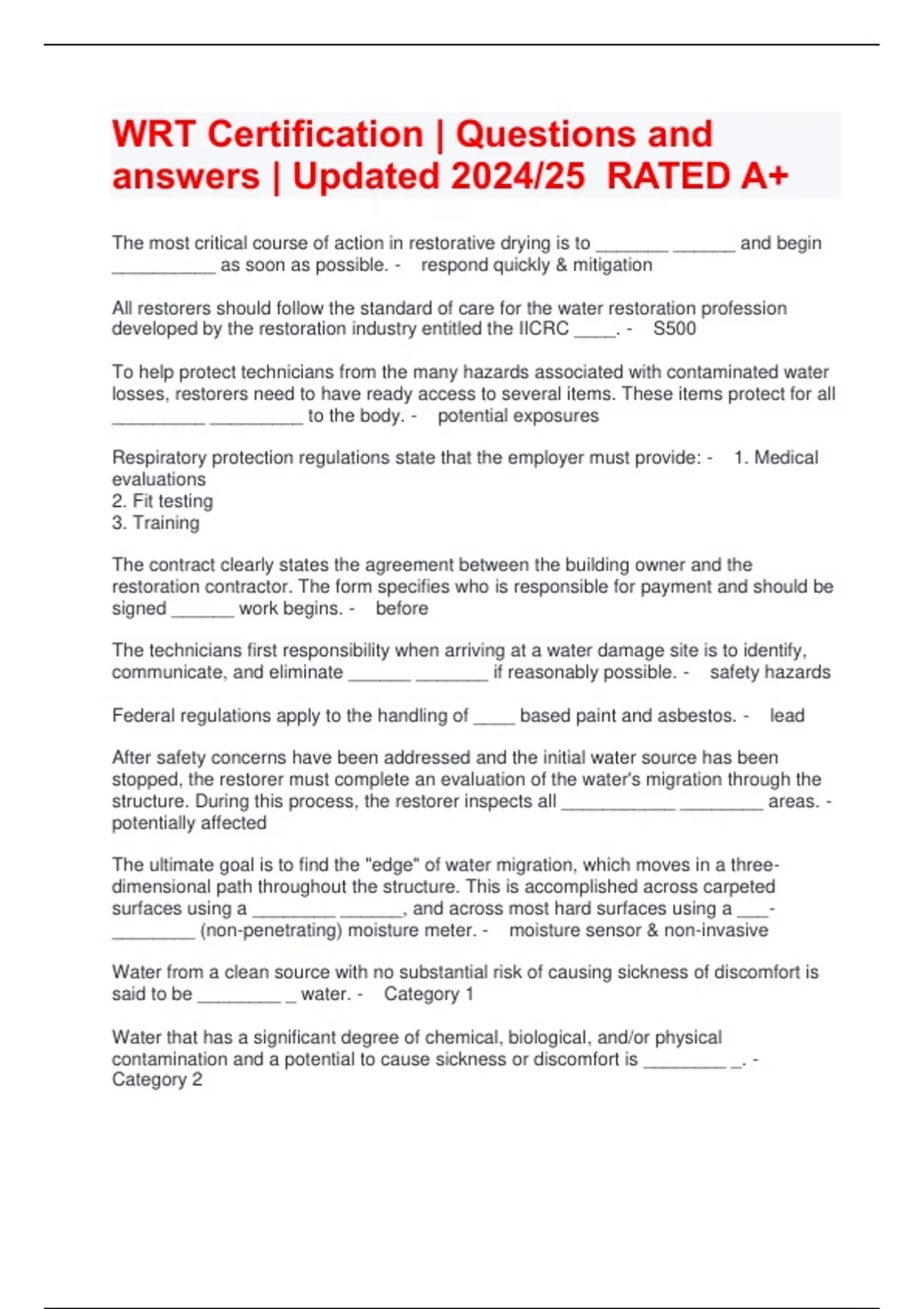 WRT Certification | Questions and answers | Updated 2024/25 RATED A+