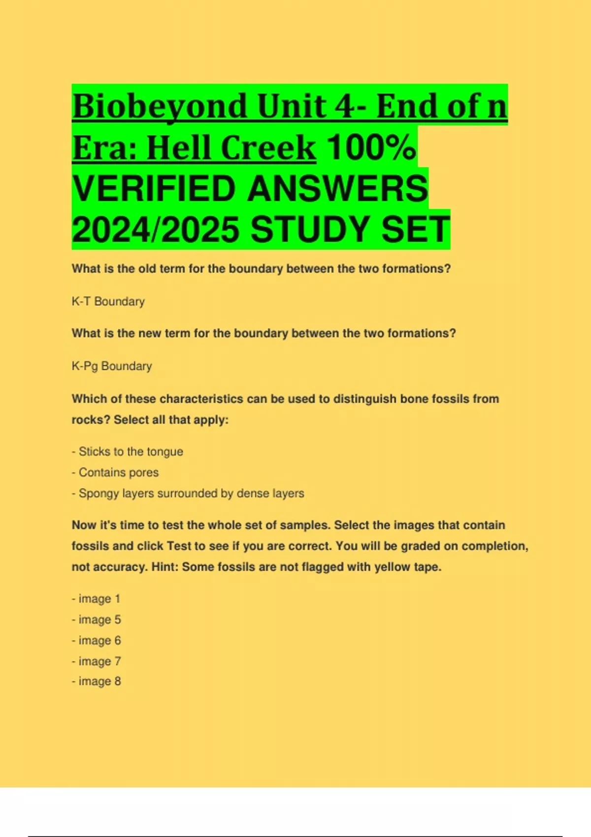 Biobeyond Unit 4- End of n Era: Hell Creek 100% VERIFIED ANSWERS 2024/2025 STUDY SET