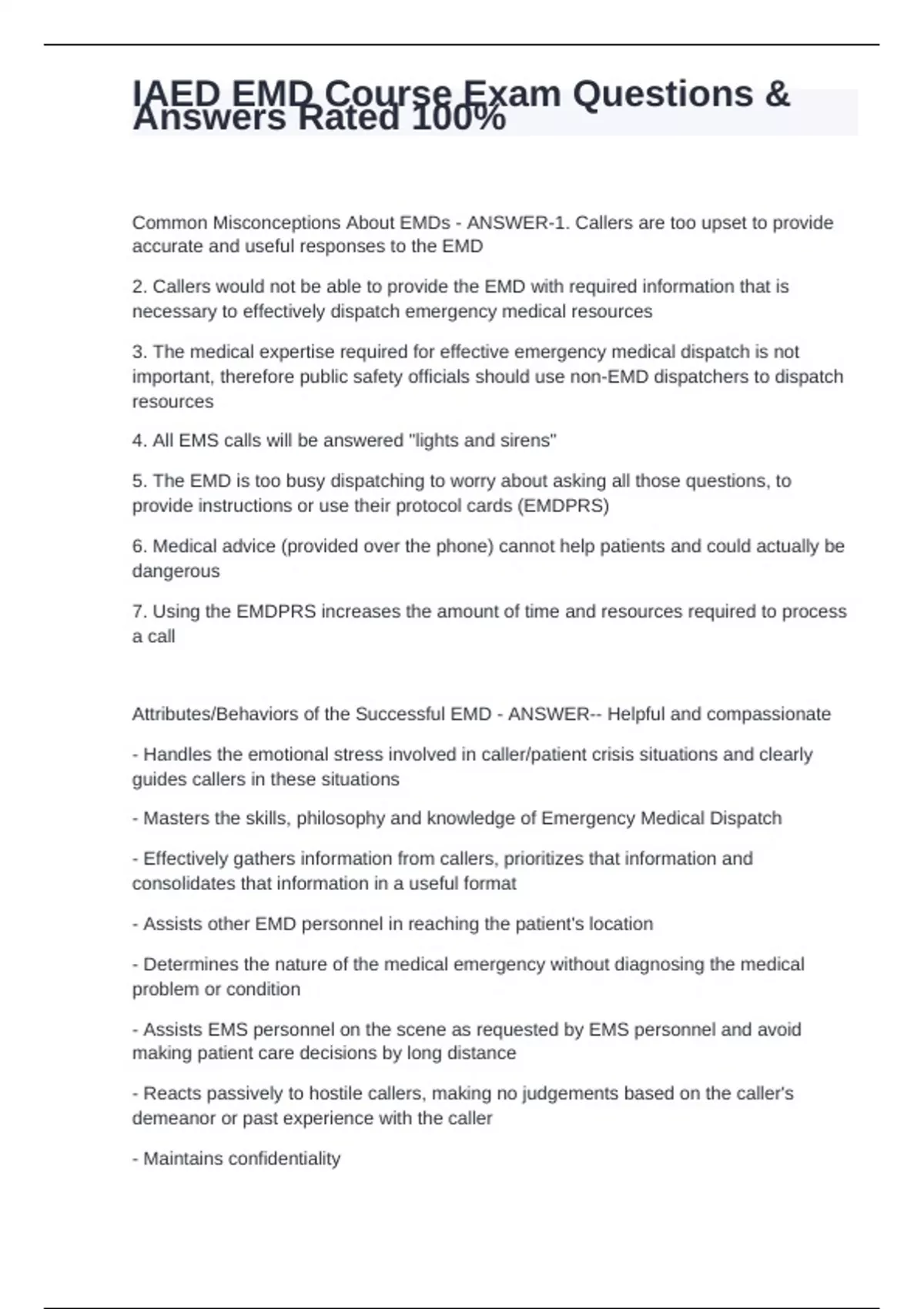 IAED EMD Course Exam Questions & Answers Rated 100%
