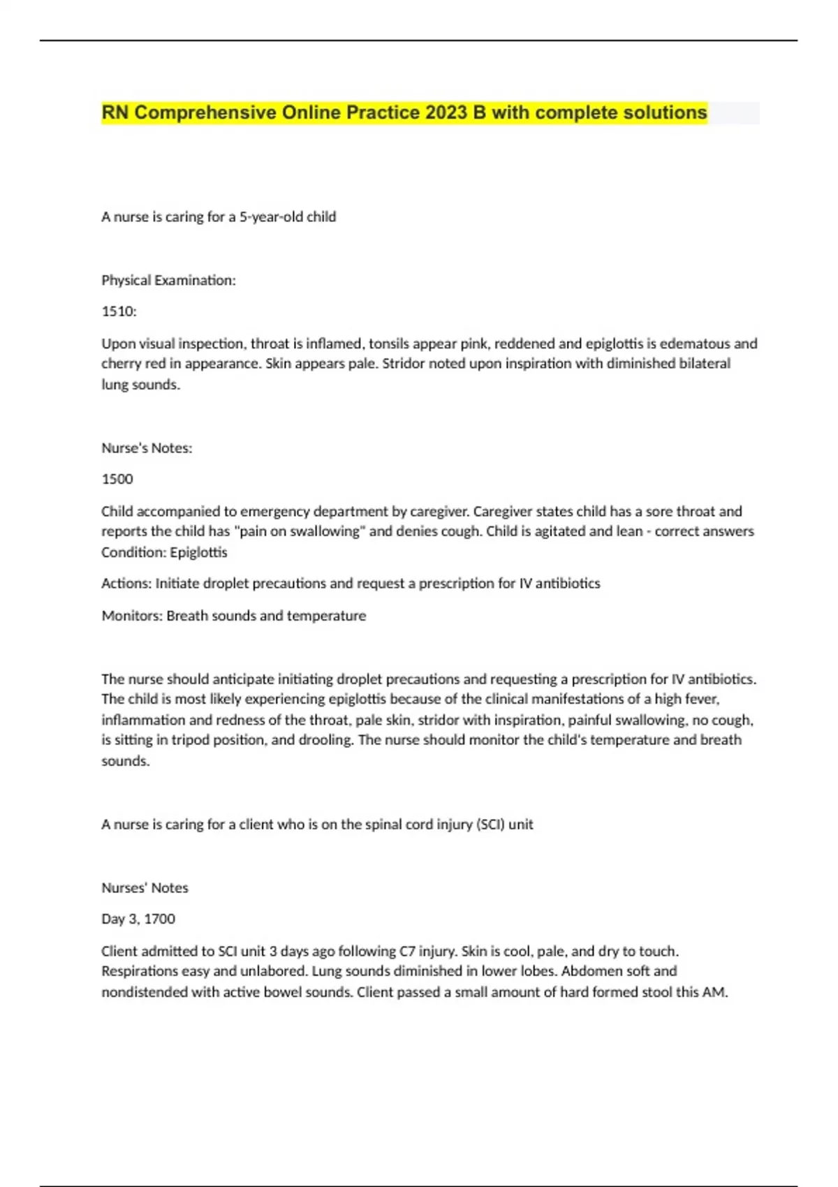 RN Comprehensive Online Practice 2023 B with complete solutions