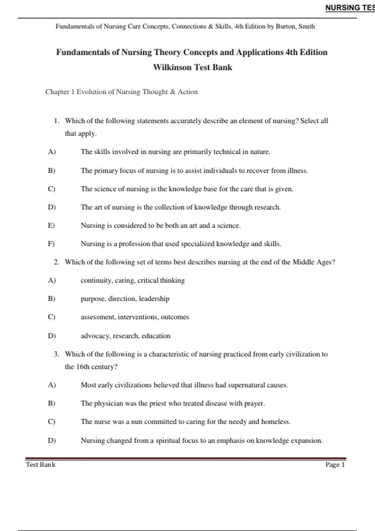 Fundamentals of Nursing Care Concepts, Connections & Skills, 4th Edition by Burton, Smith Test Bank | All Chapters