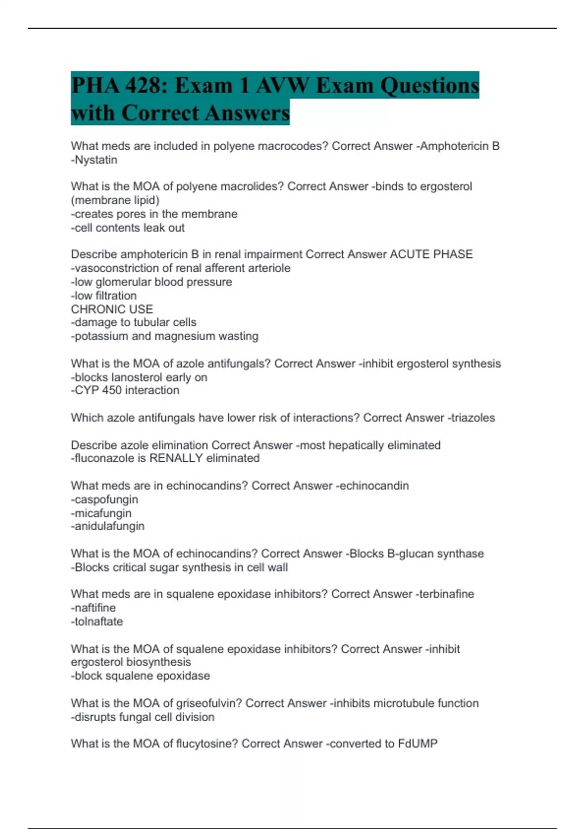 PHA 428: Exam 1 AVW Exam Questions with Correct Answers