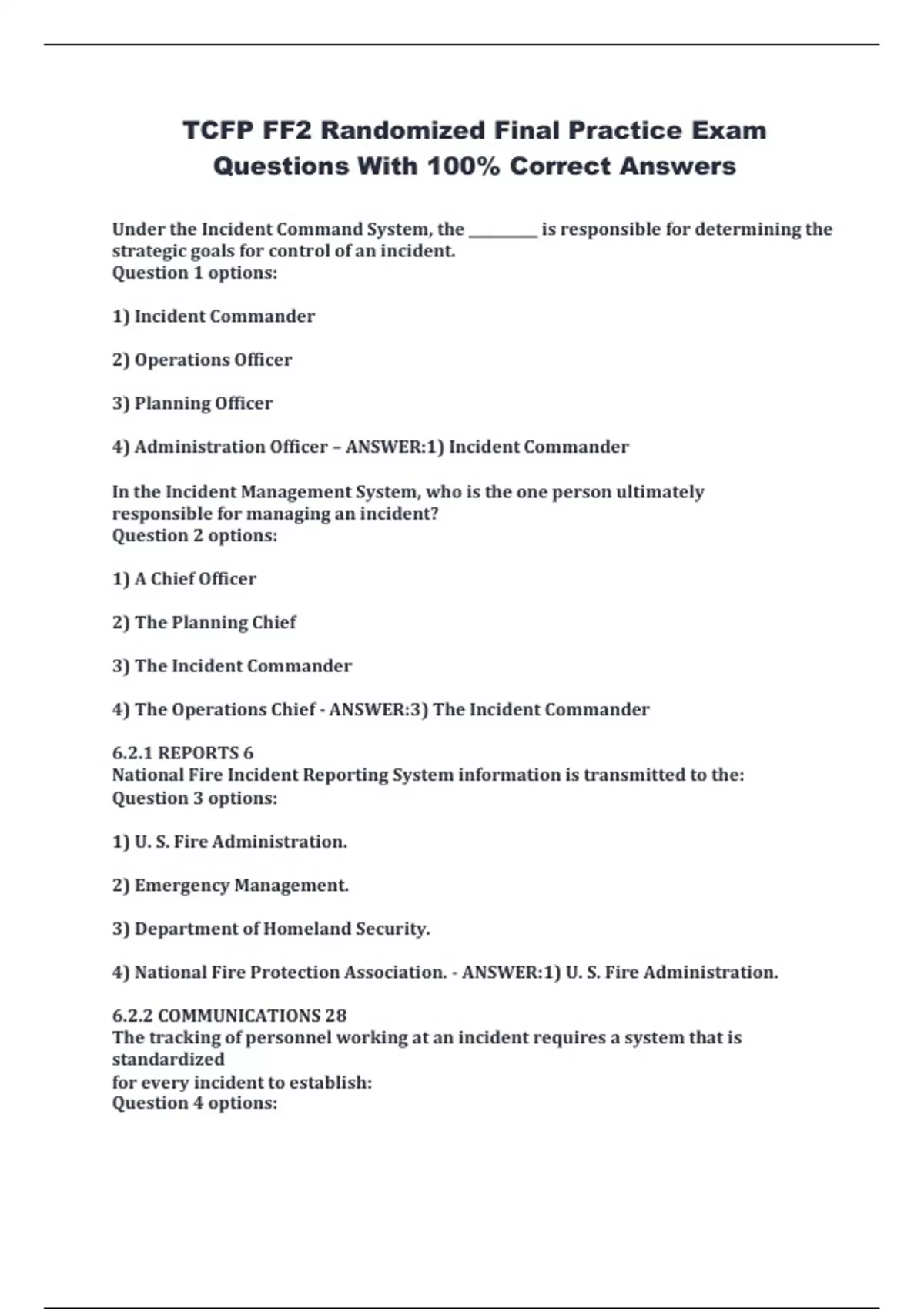 TCFP FF2 Randomized Final Practice Exam Questions With 100% Correct Answers