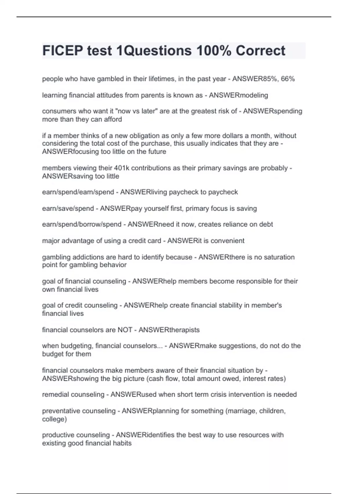 FICEP test 1Questions 100% Correct