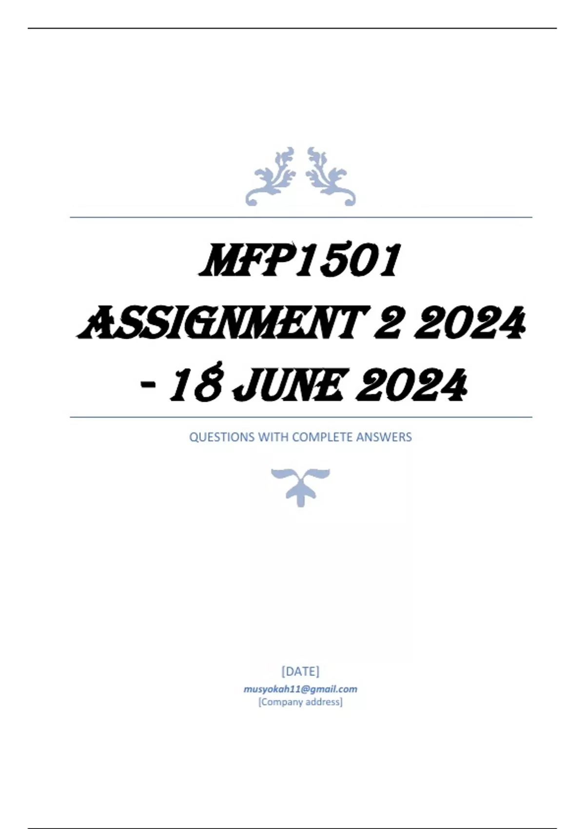 ,MFP1501 Assignment 2 2024 - 18 June 2024