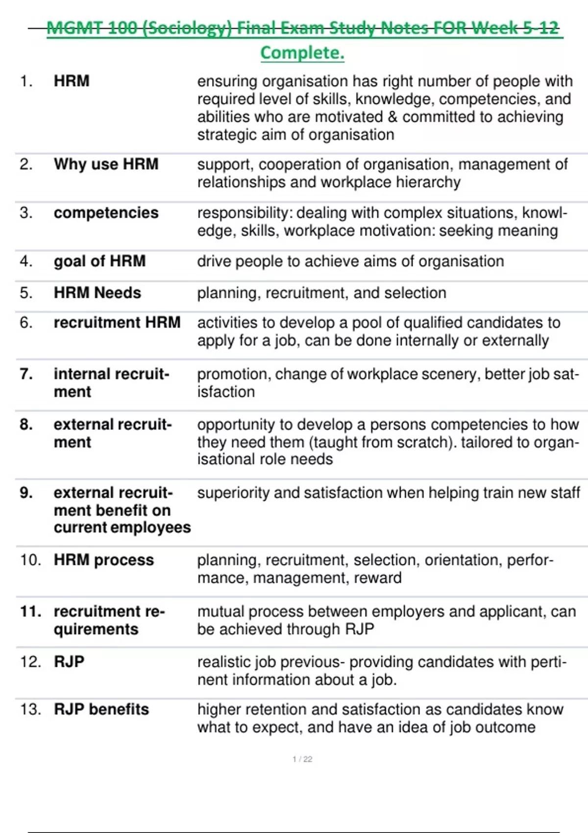 MGMT 100 (Sociology) Final Exam Study Notes FOR Week 5-12 Complete.
