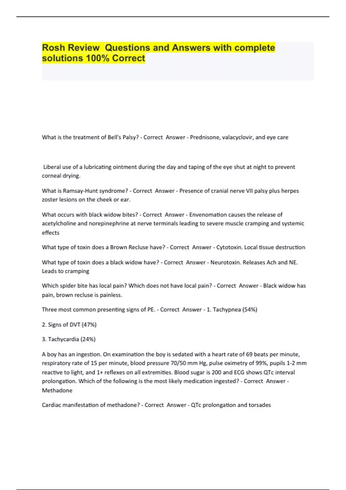 Rosh Review Questions and Answers with complete solutions 100% Correct.