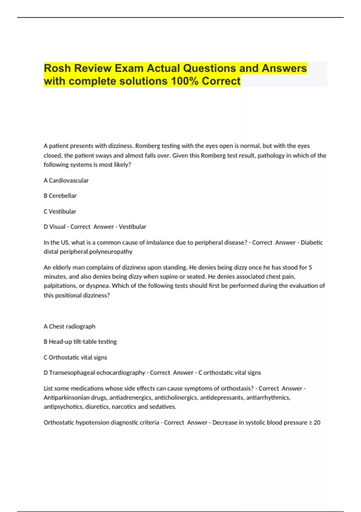 Rosh Review Exam Actual Questions and Answers with complete solutions 100% Correct