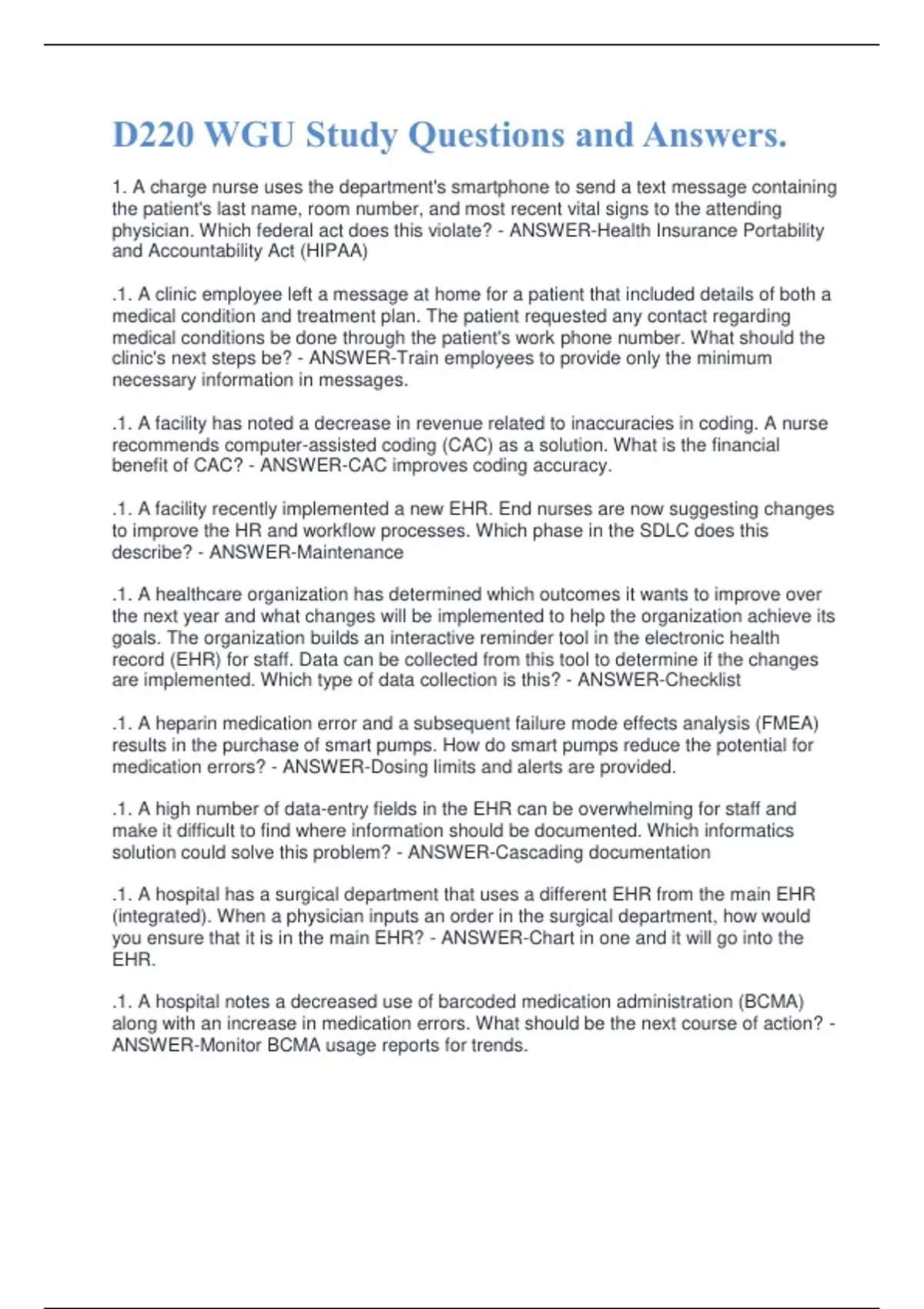 D220 WGU Study Questions and Answers. WGU Study Questions and Answers.
