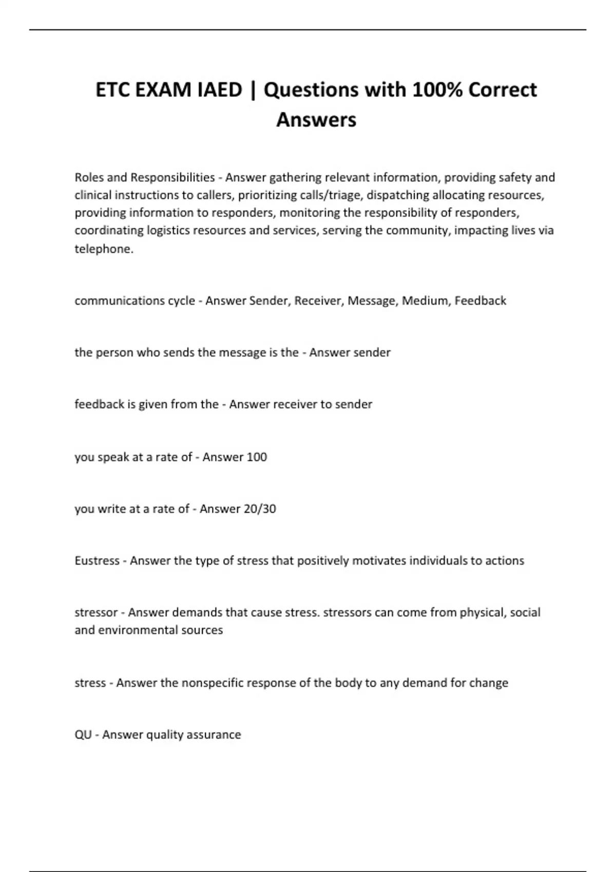 ETC EXAM IAED | Questions with 100% Correct Answers