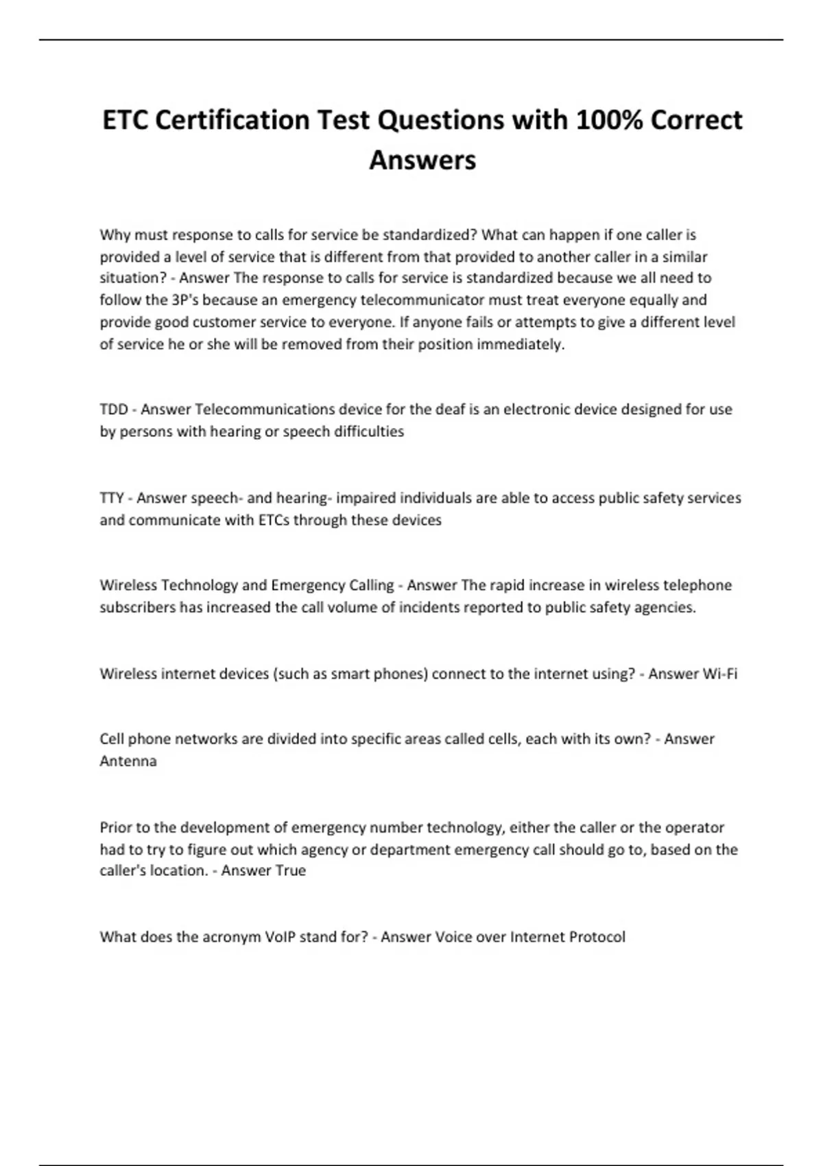 ETC Certification Test Questions with 100% Correct Answers