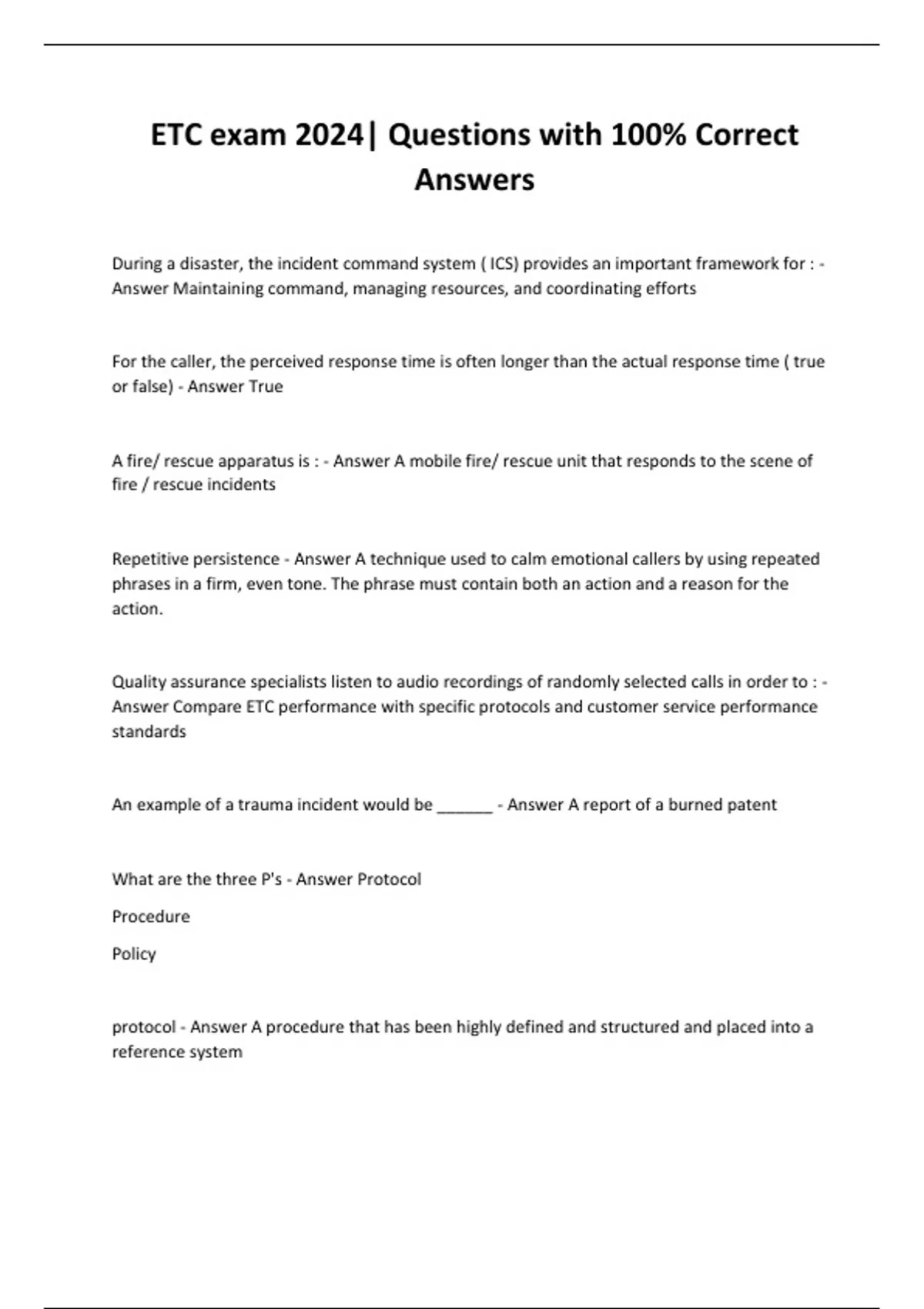 ETC exam 2024| Questions with 100% Correct Answers
