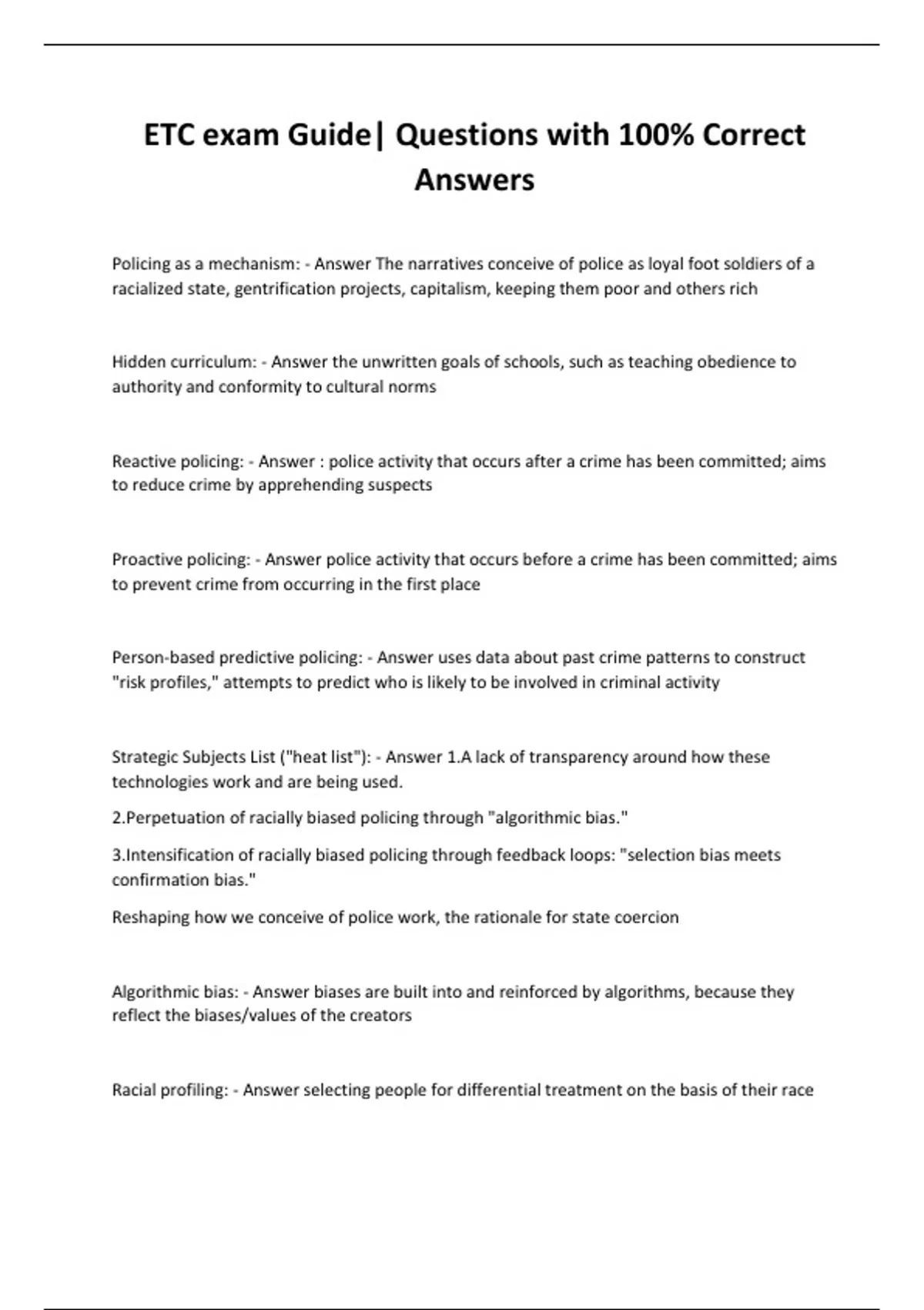 ETC exam Guide| Questions with 100% Correct Answers