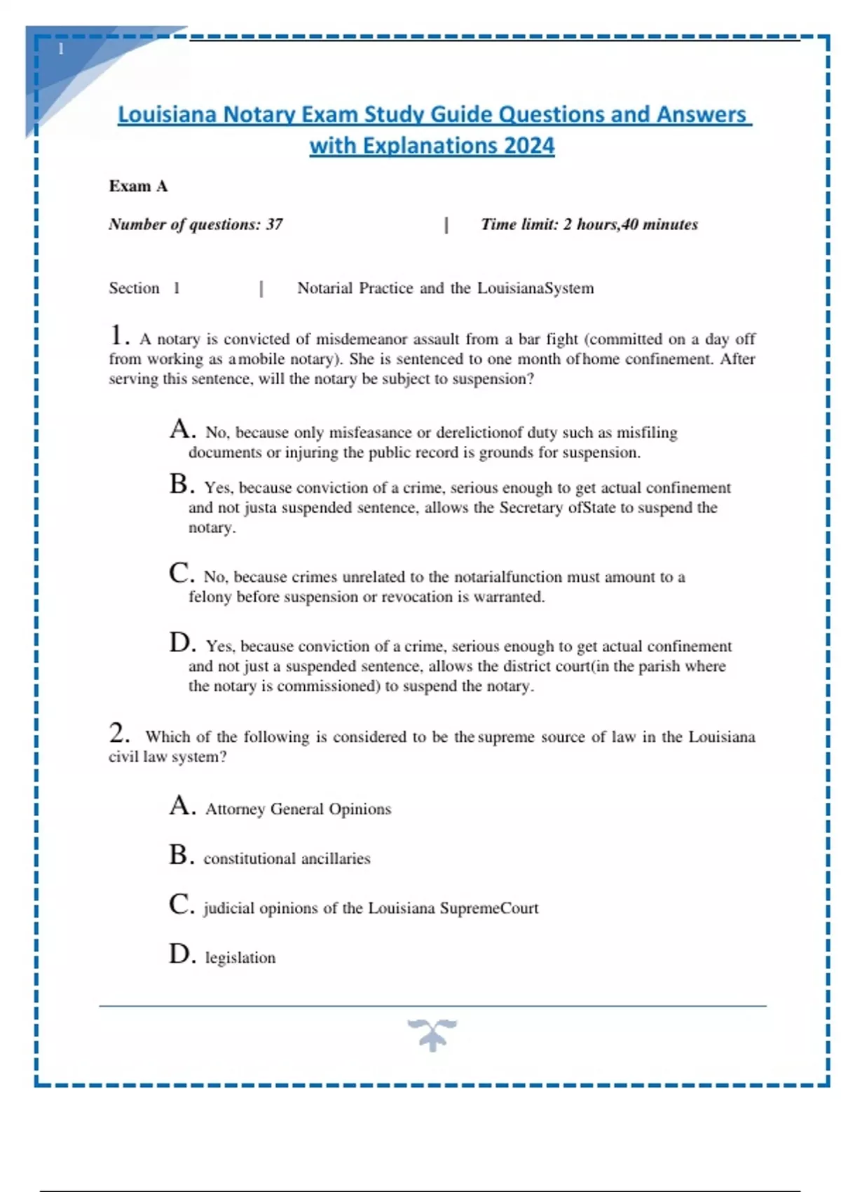 Louisiana Notary Exam Study Guide Questions and Answers with Explanations 2024.