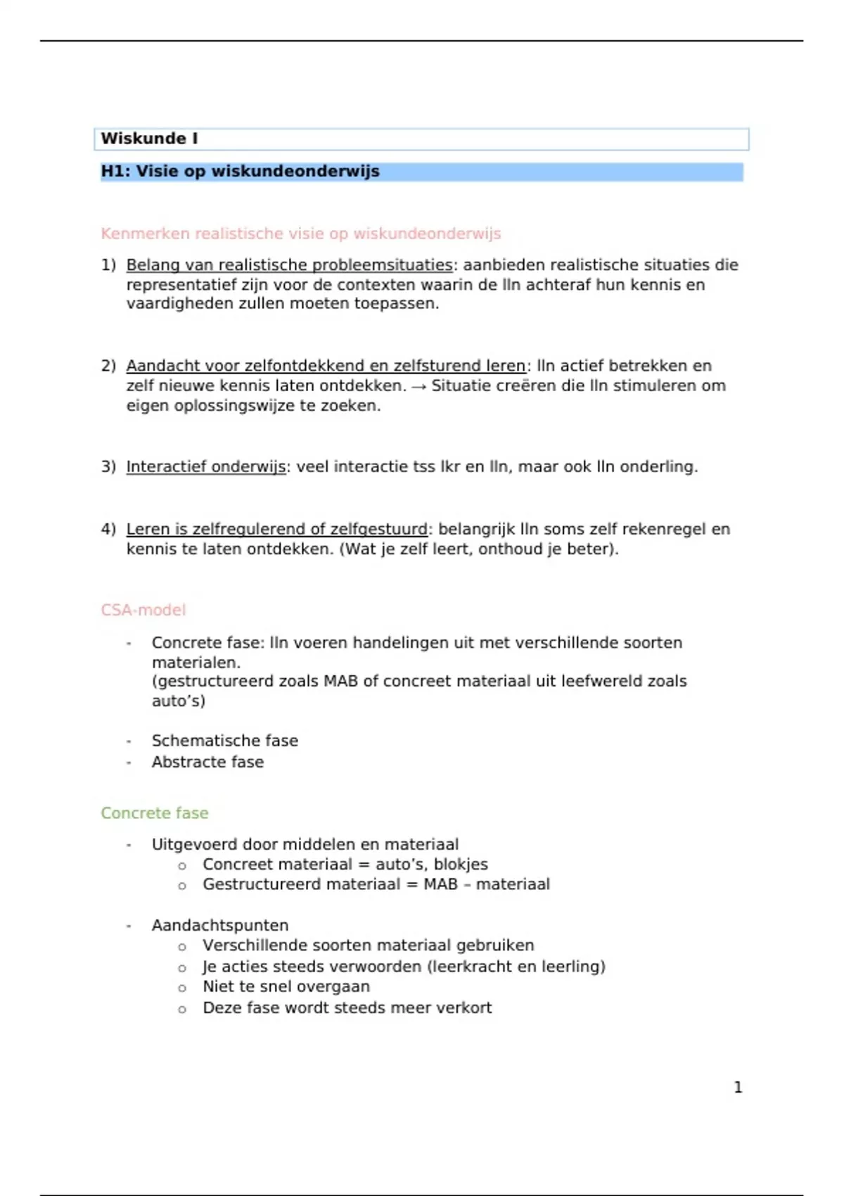 H1: Visie op wiskundeonderwijs