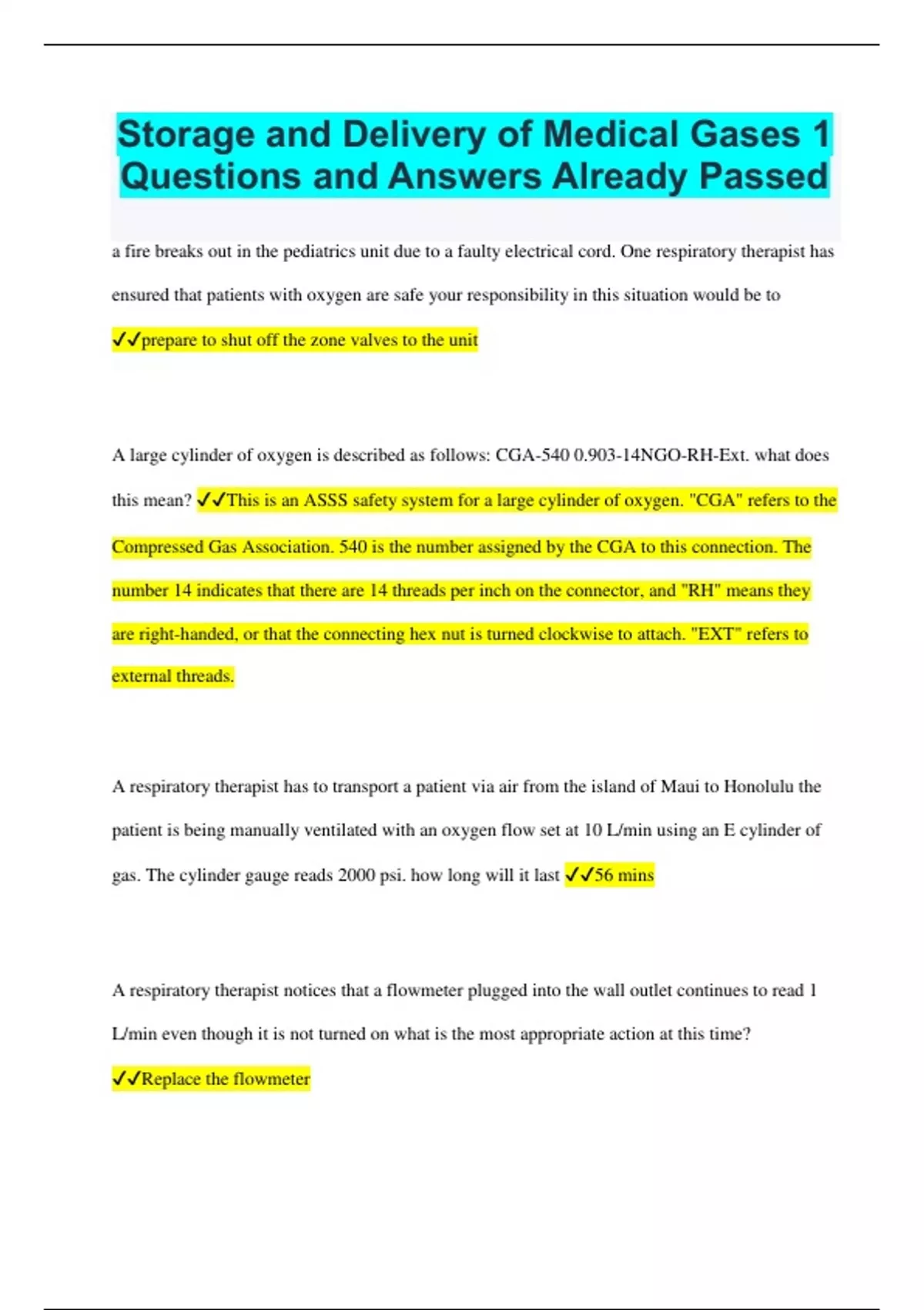 Storage and Delivery of Medical Gases 1 Questions and Answers Already Passed