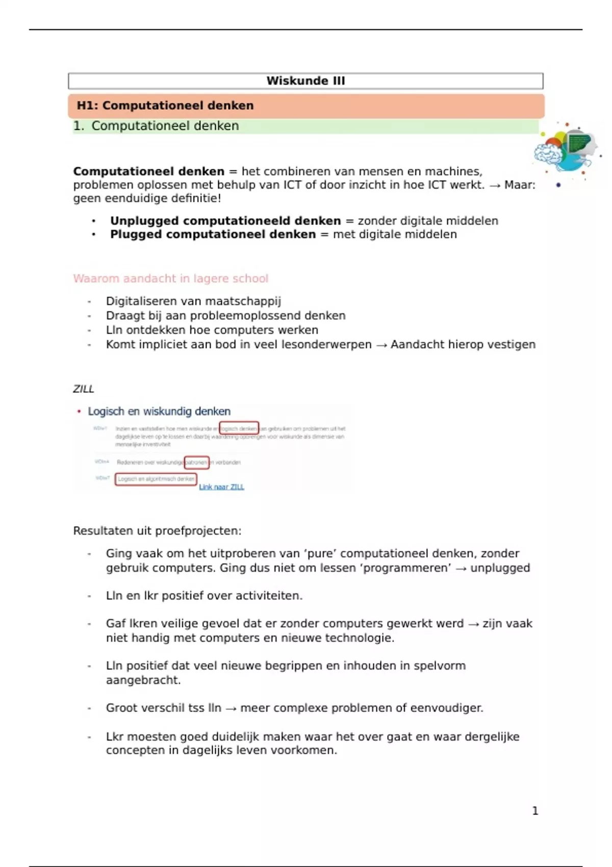 Computationeel denken en algoritmisch denken met enkele voorbeeldactiviteiten gezien tijdens de les.