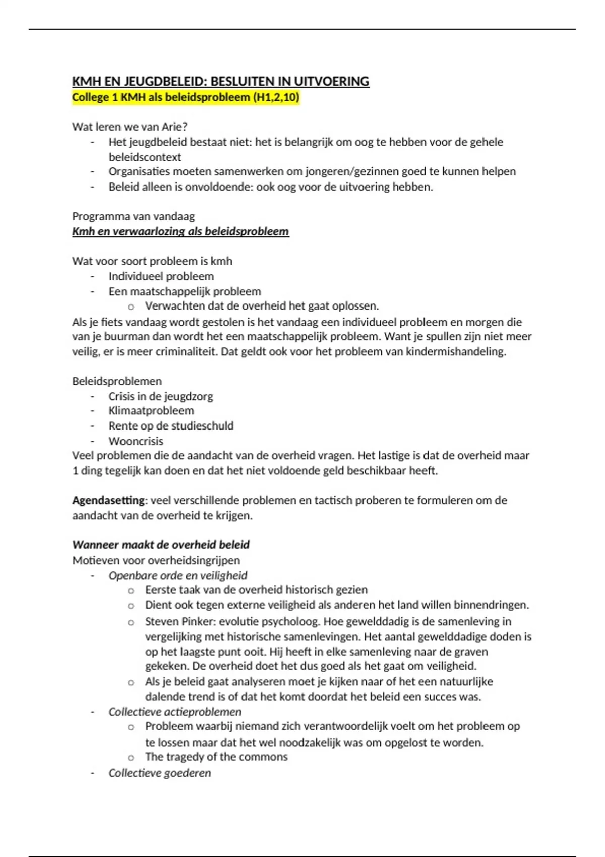 College 1 KMH als beleidsprobleem (H1,2,10)