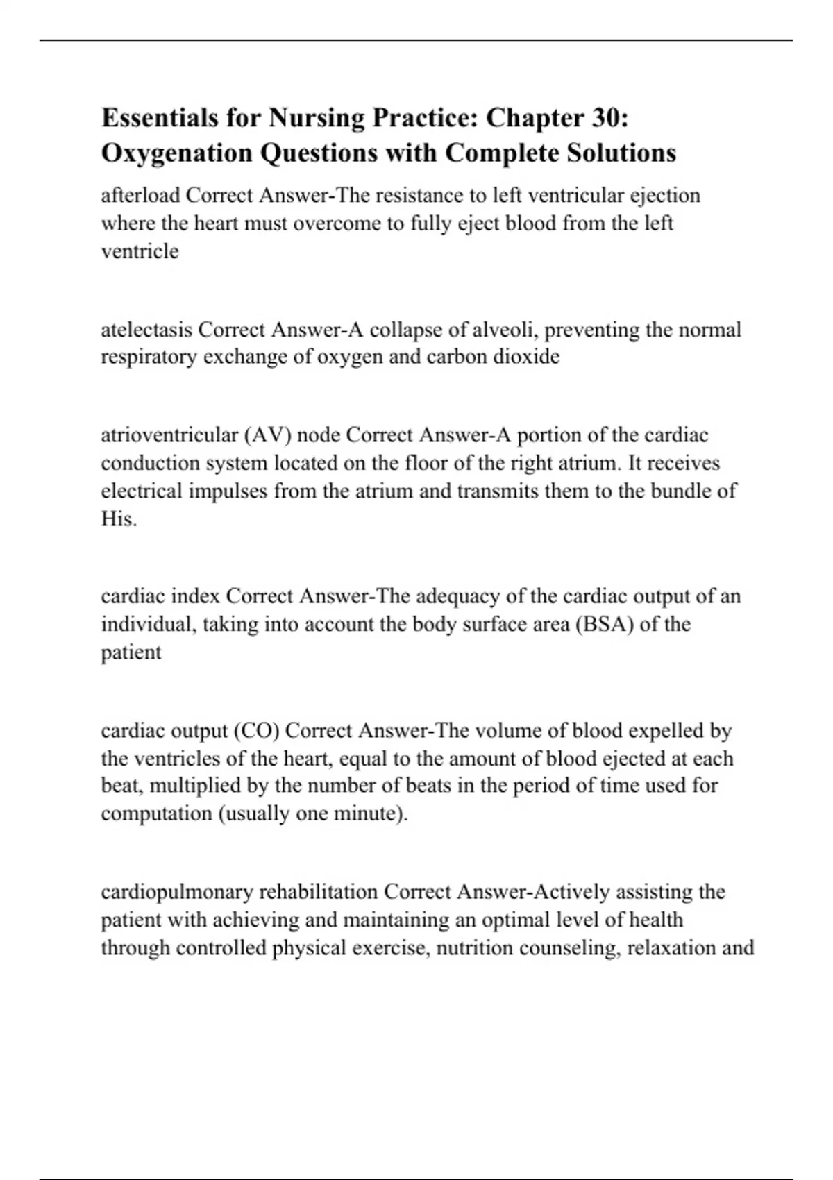 Essentials for Nursing Practice: Chapter 30: Oxygenation Questions with Complete Solutions