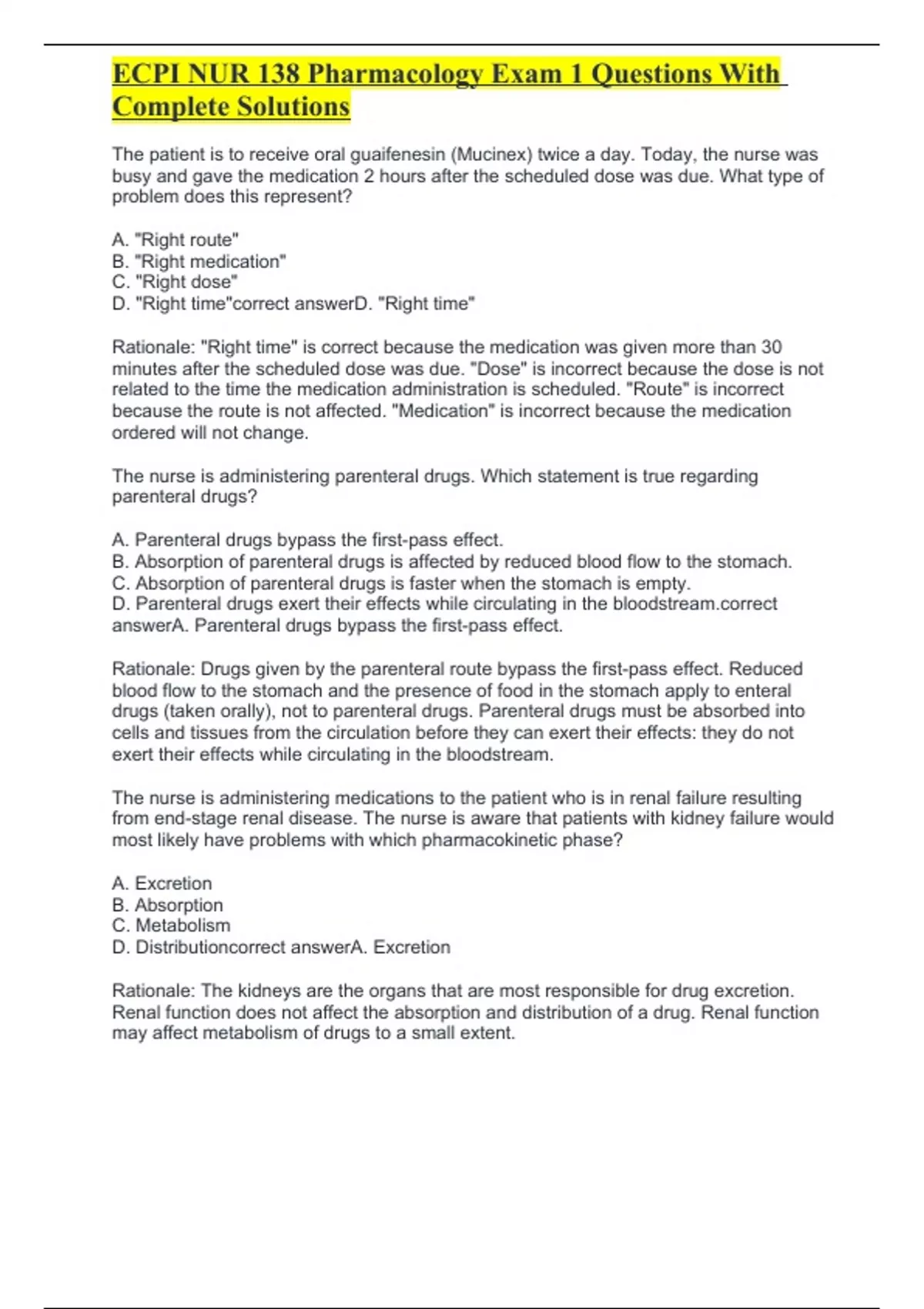 ECPI NUR 138 Pharmacology Exam 1 Questions With Complete SolutionsECPI NUR 138 Pharmacology Exam 1 Questions With Complete Solutions